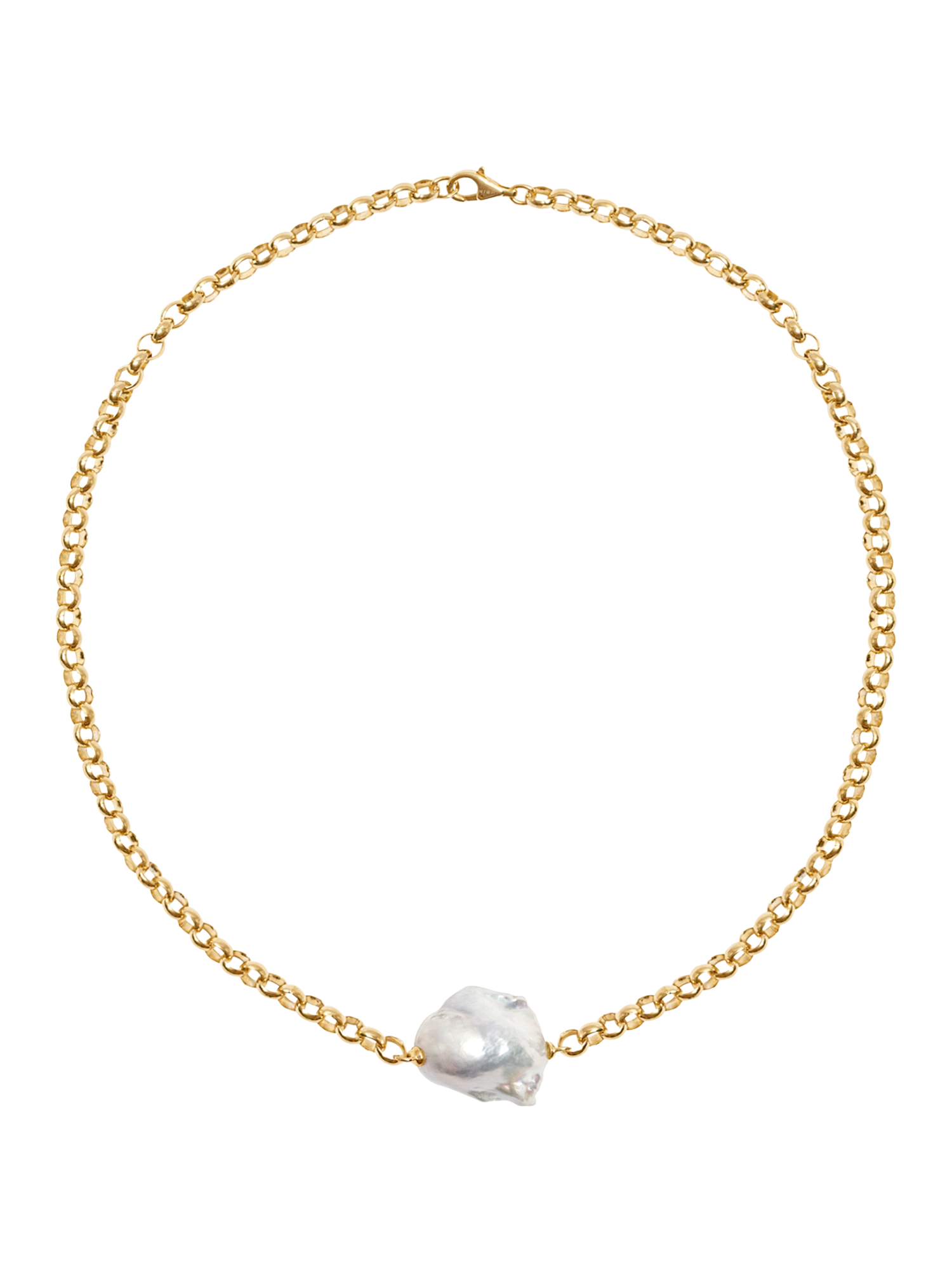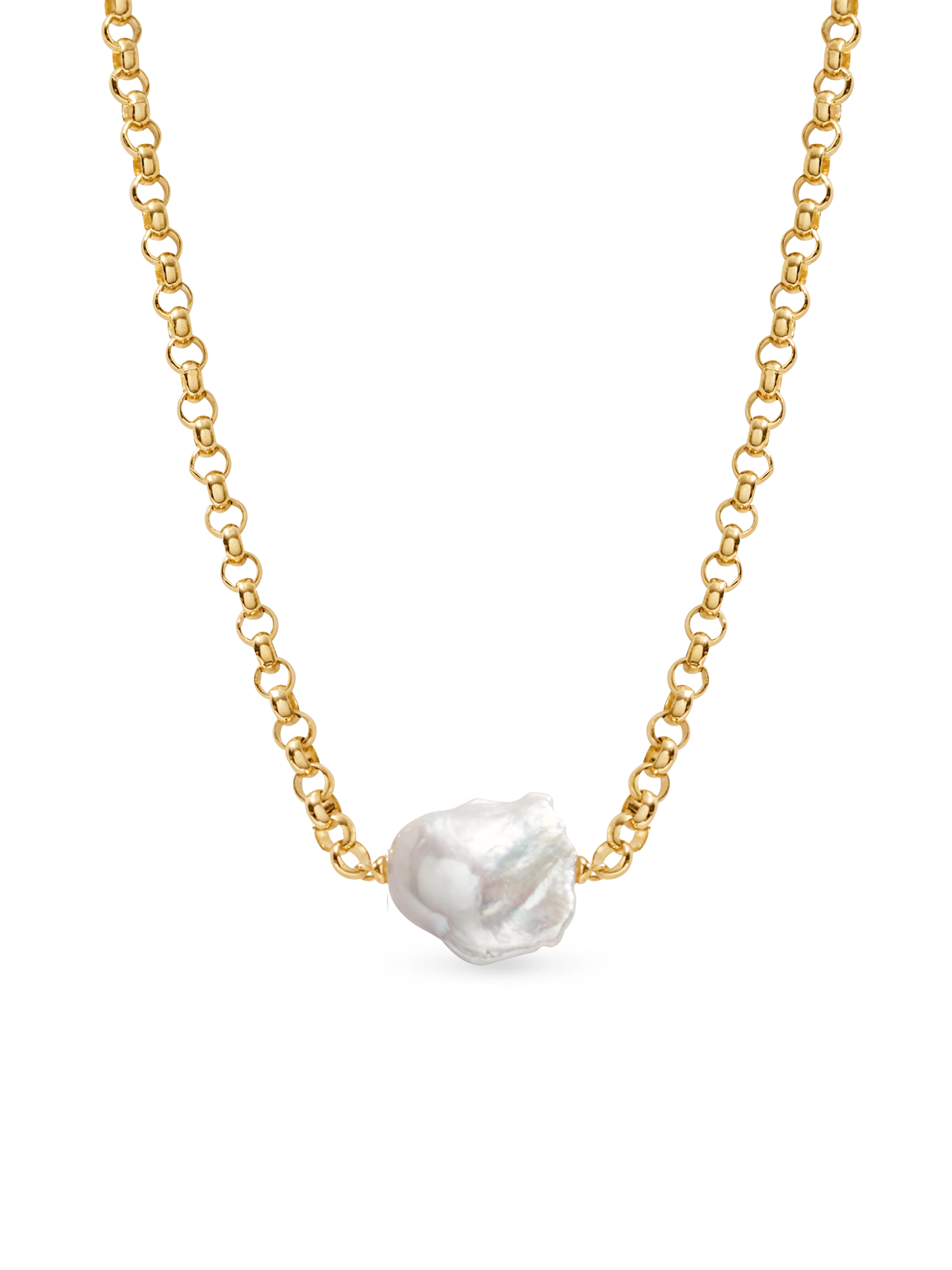 Unite elegance and strength: The Riley Necklace effortlessly bridges the feminine allure of a one-of-a-kind baroque pearl with the boldness of a vermeil chain. Discover the perfect blend of grace and power in this unique piece.