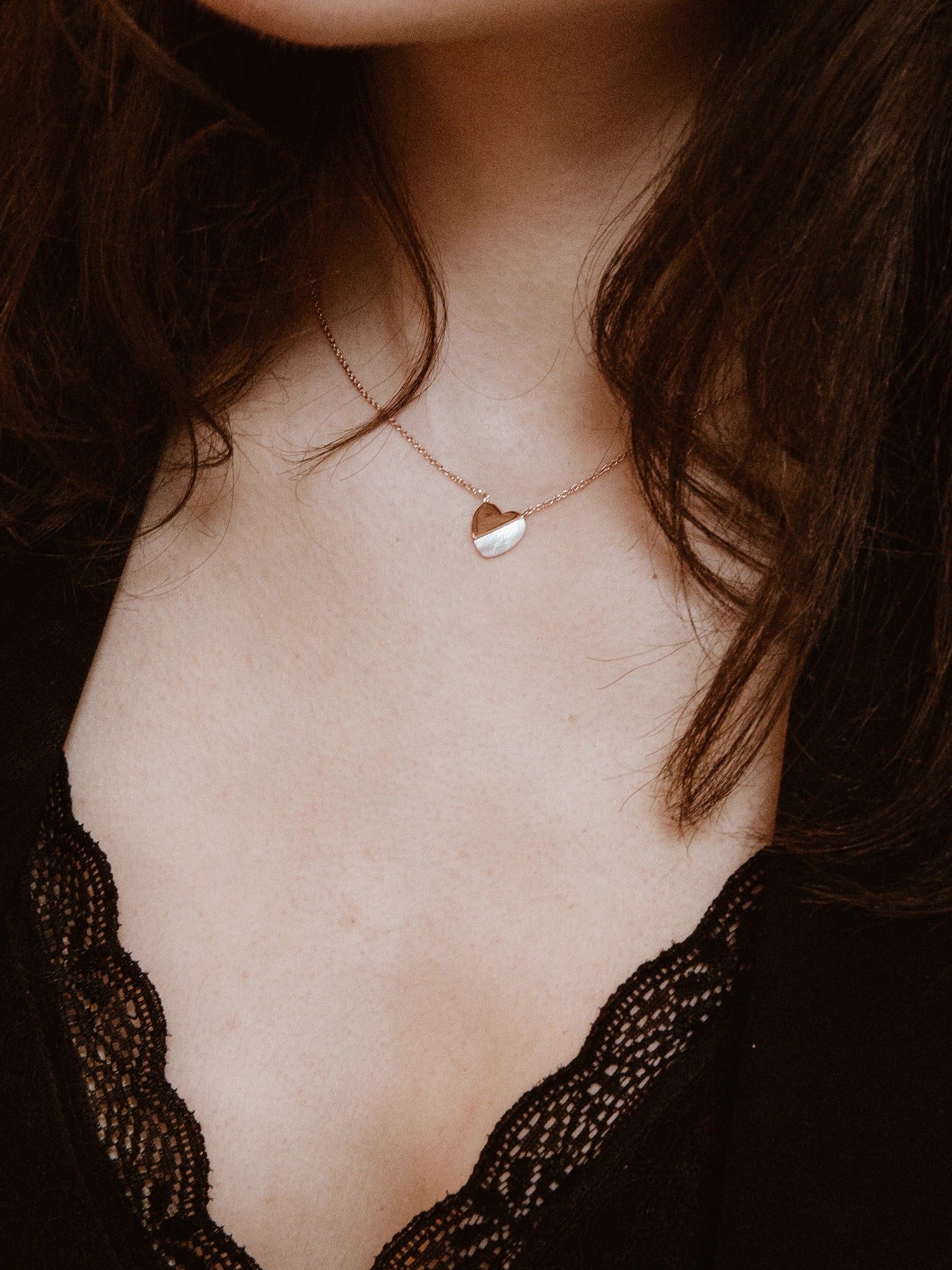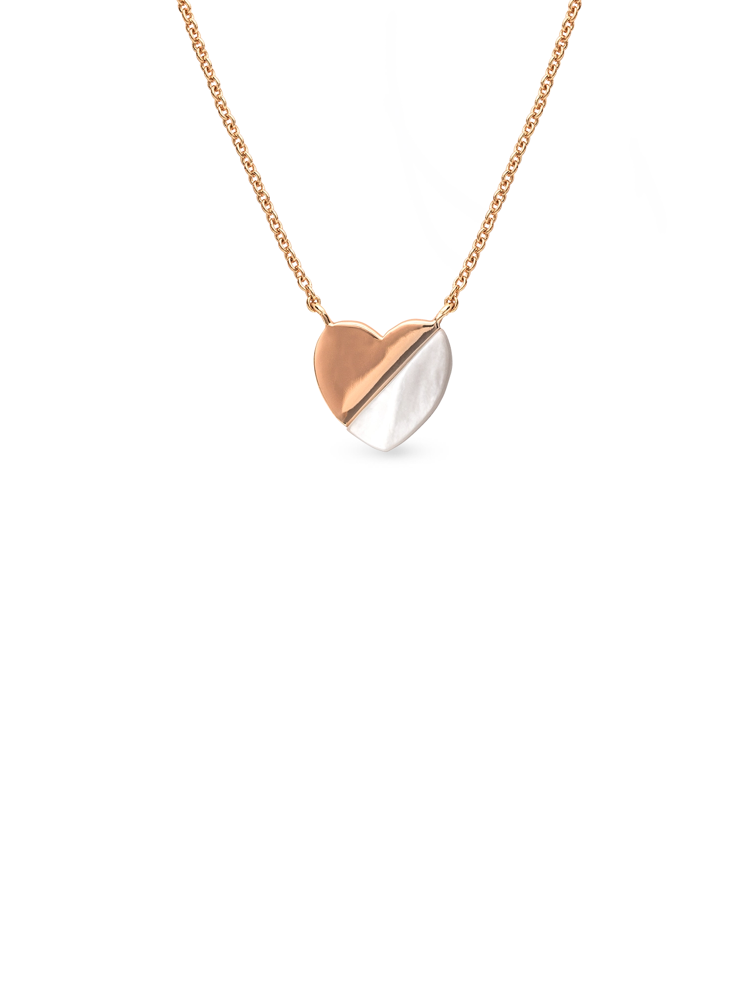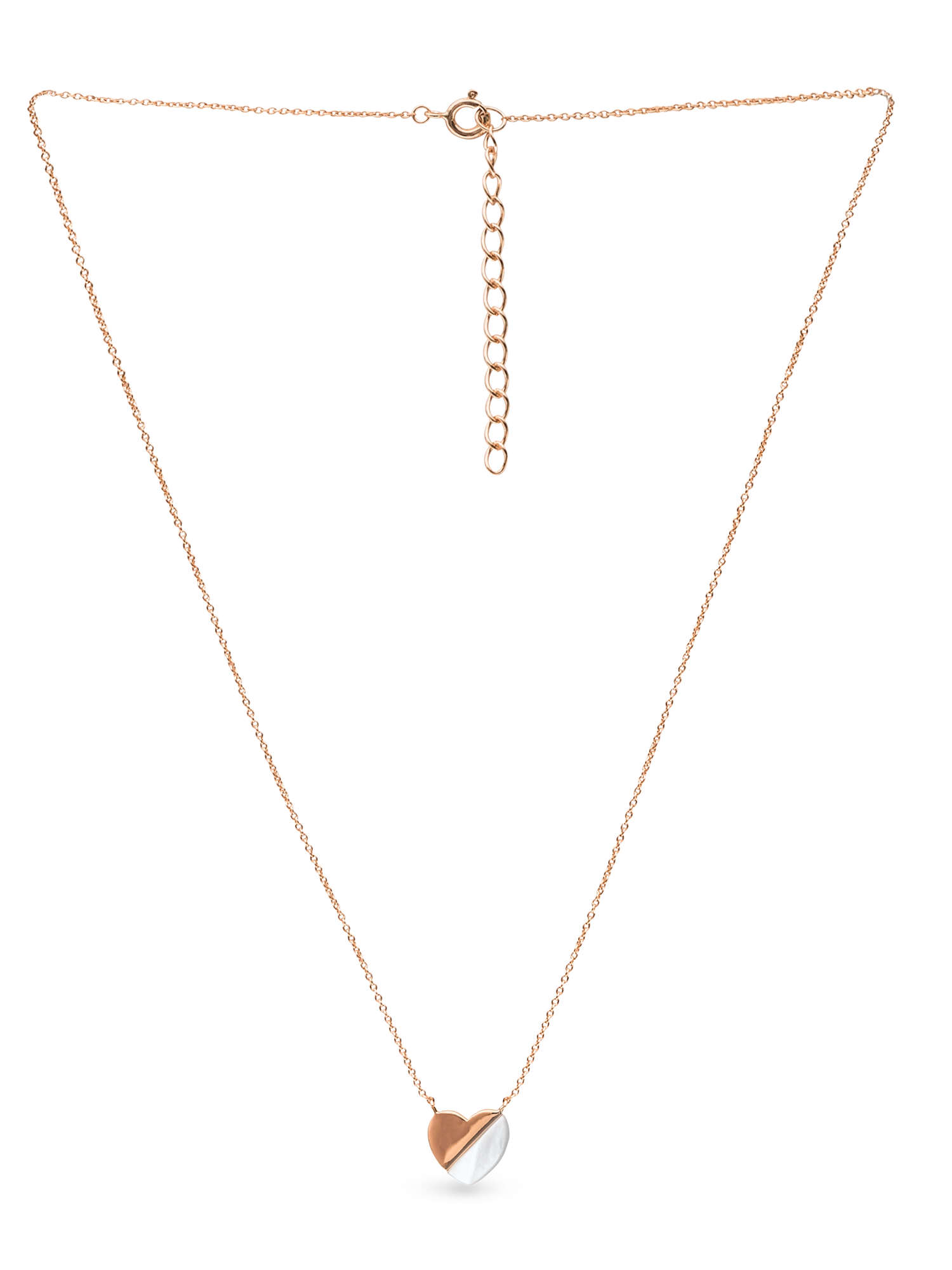 Love is redefined with this elegant Blushed Heart Necklace showcasing the combination of white mother of pearl with rose-gold plated silver. A celebration of delicate craftsmanship and the natural allure of mother of pearl.