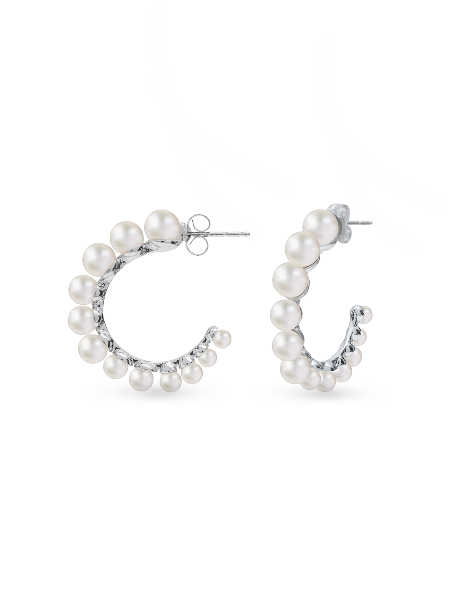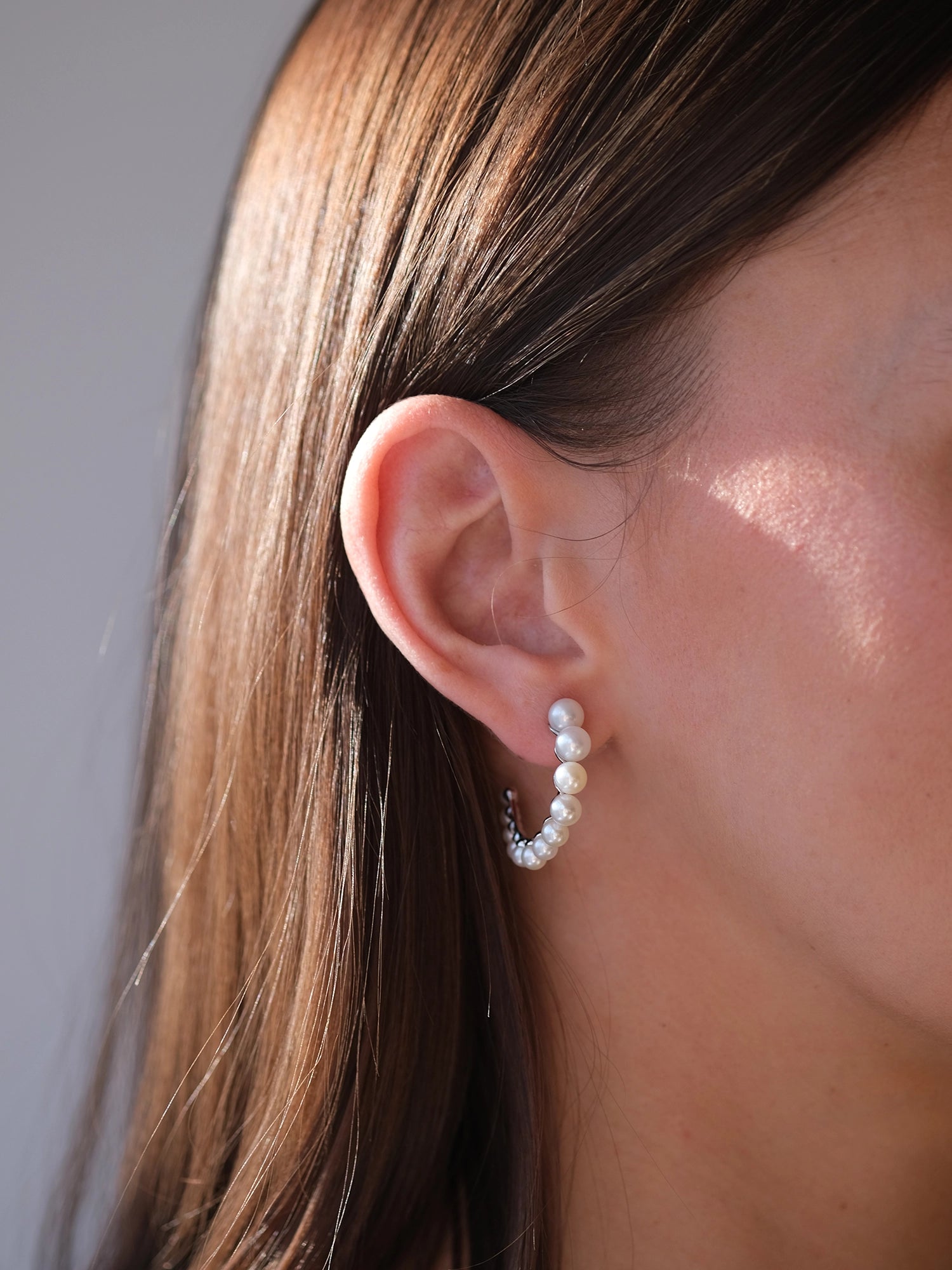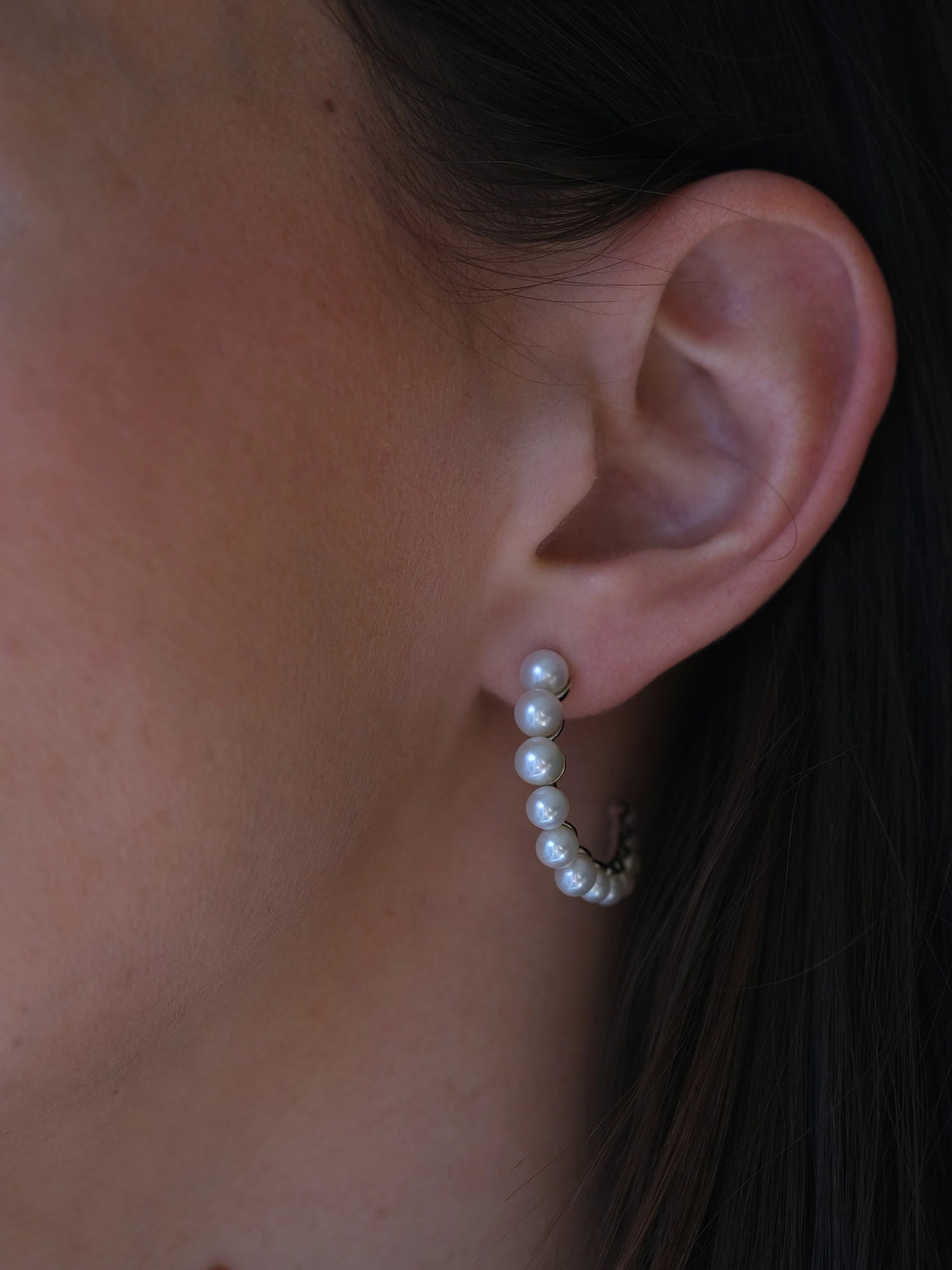 Elegance in every curve. Our Mia Earrings are the epitome of sophistication, with a series of freshwater pearls, graduating in size as they gracefully cascade along the hoop.