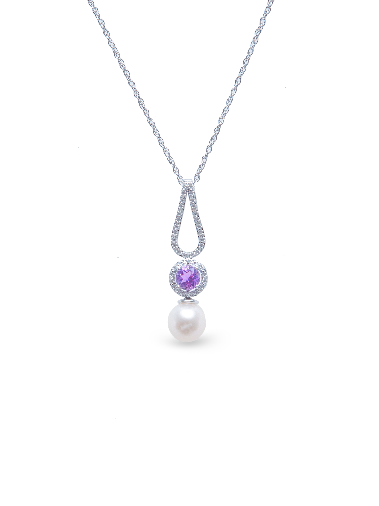 Effortlessly elegant, this pendant is embellished with natural amethyst and natural white topaz for an irresistible impact on any outfit.