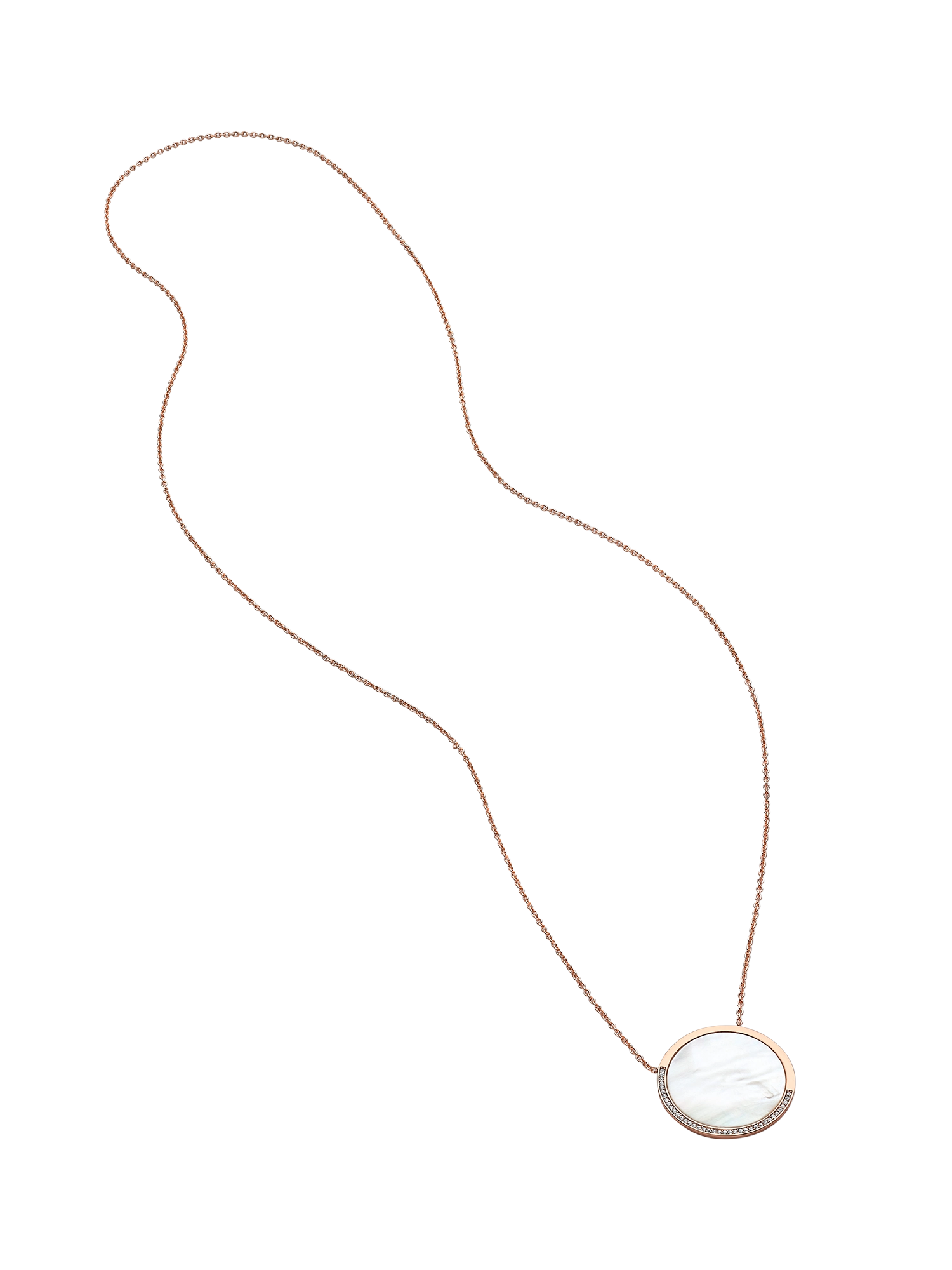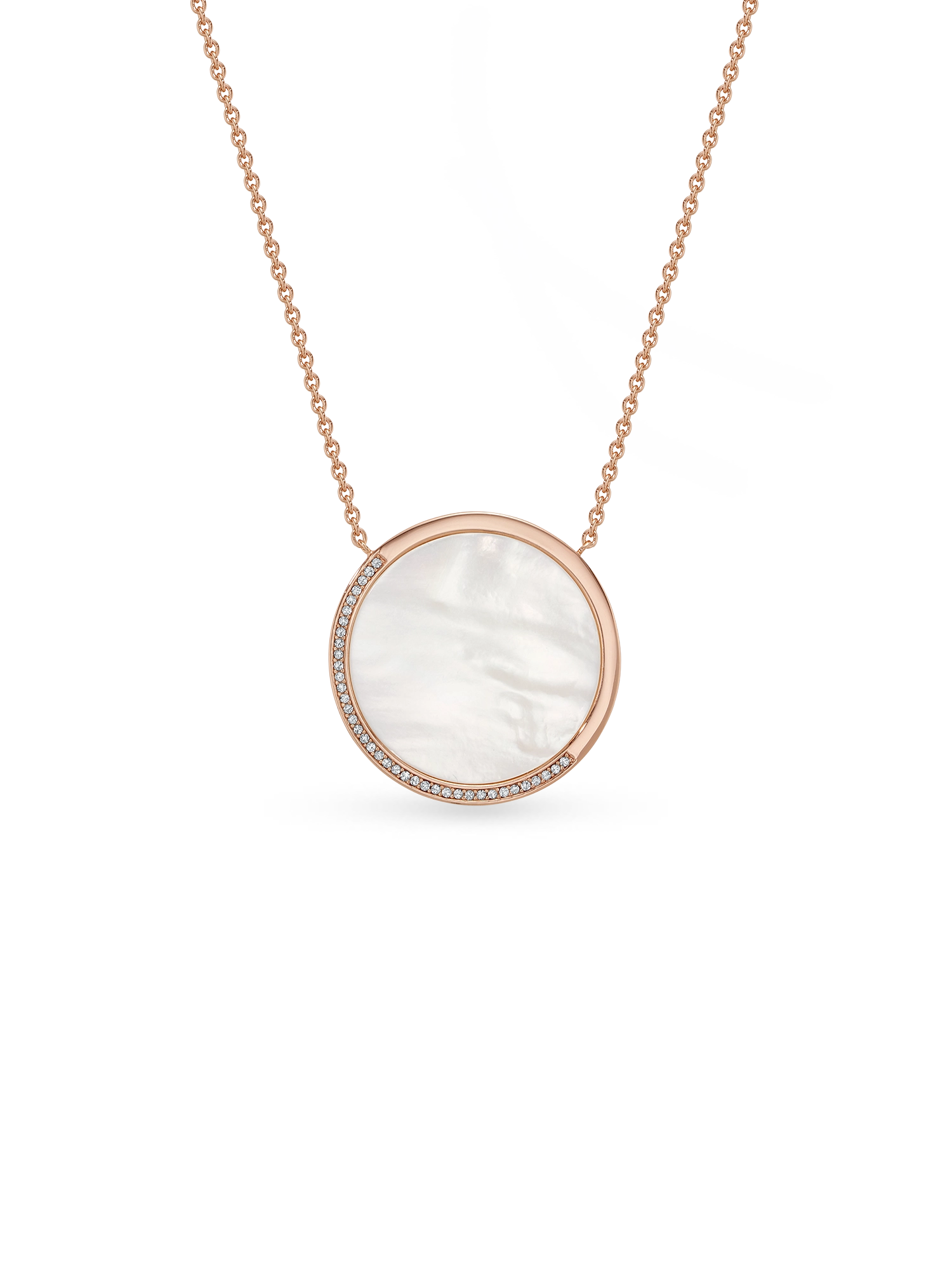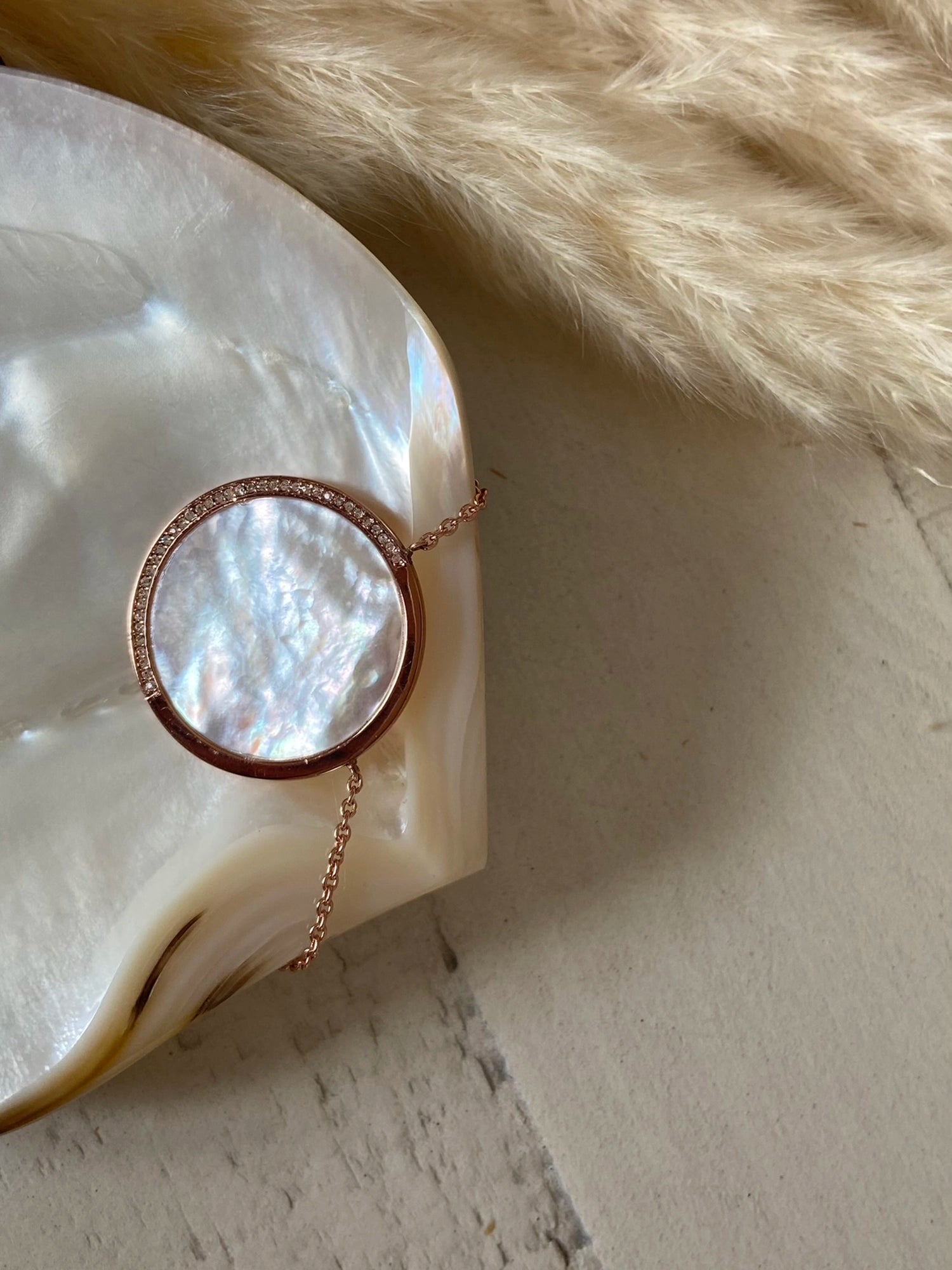 The luminous mother of pearl, with its iridescent allure, takes center stage within the intricate amulet design, while the cubic zirconia stones add a touch of opulence.