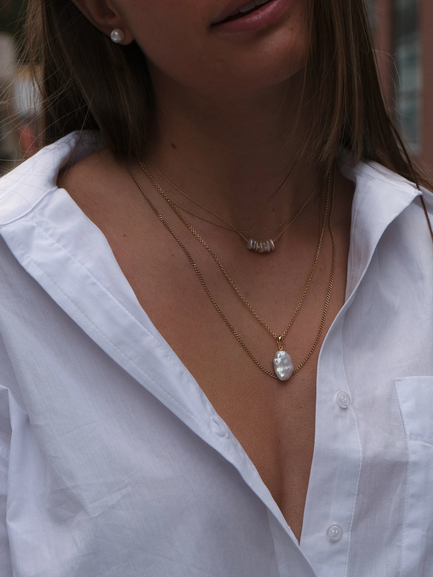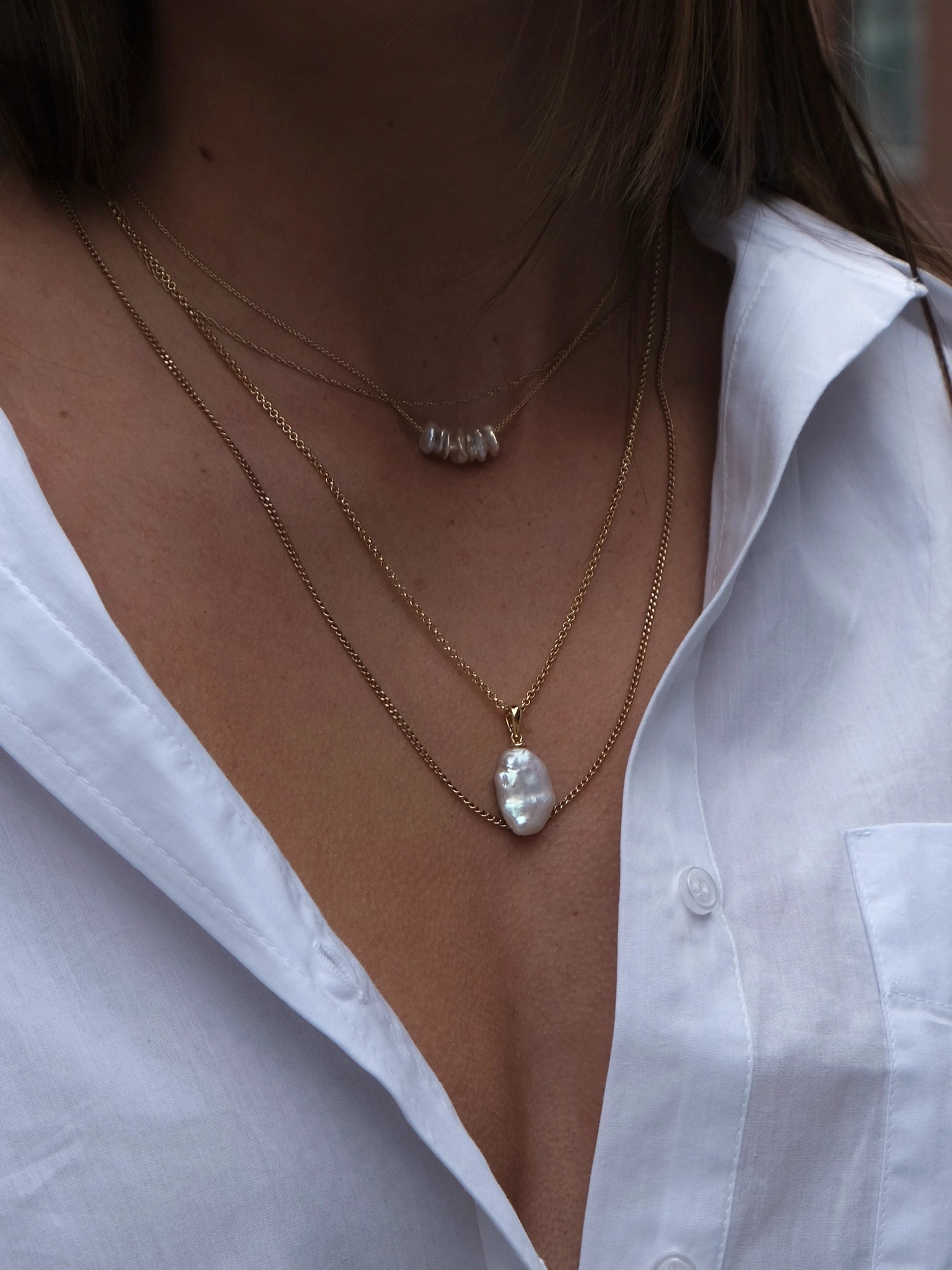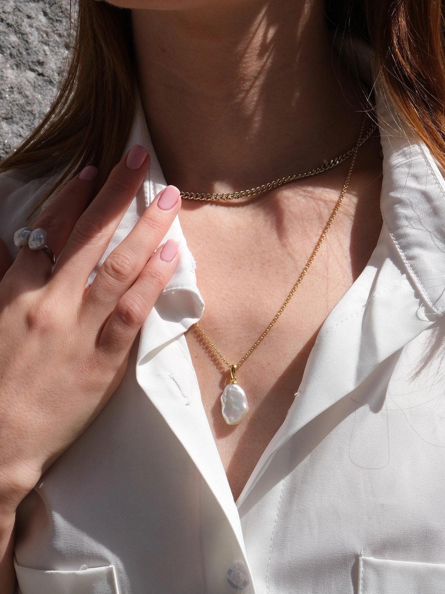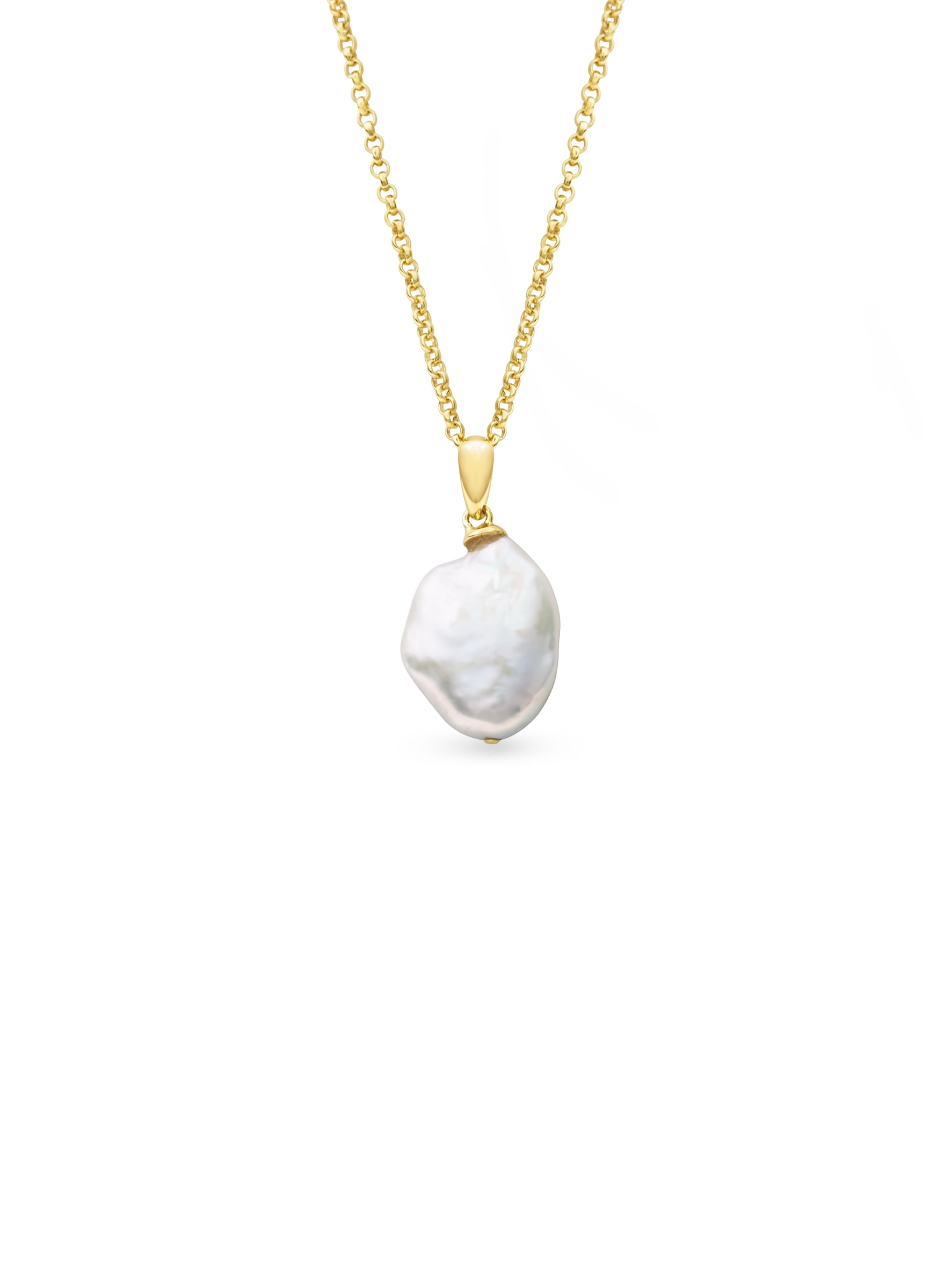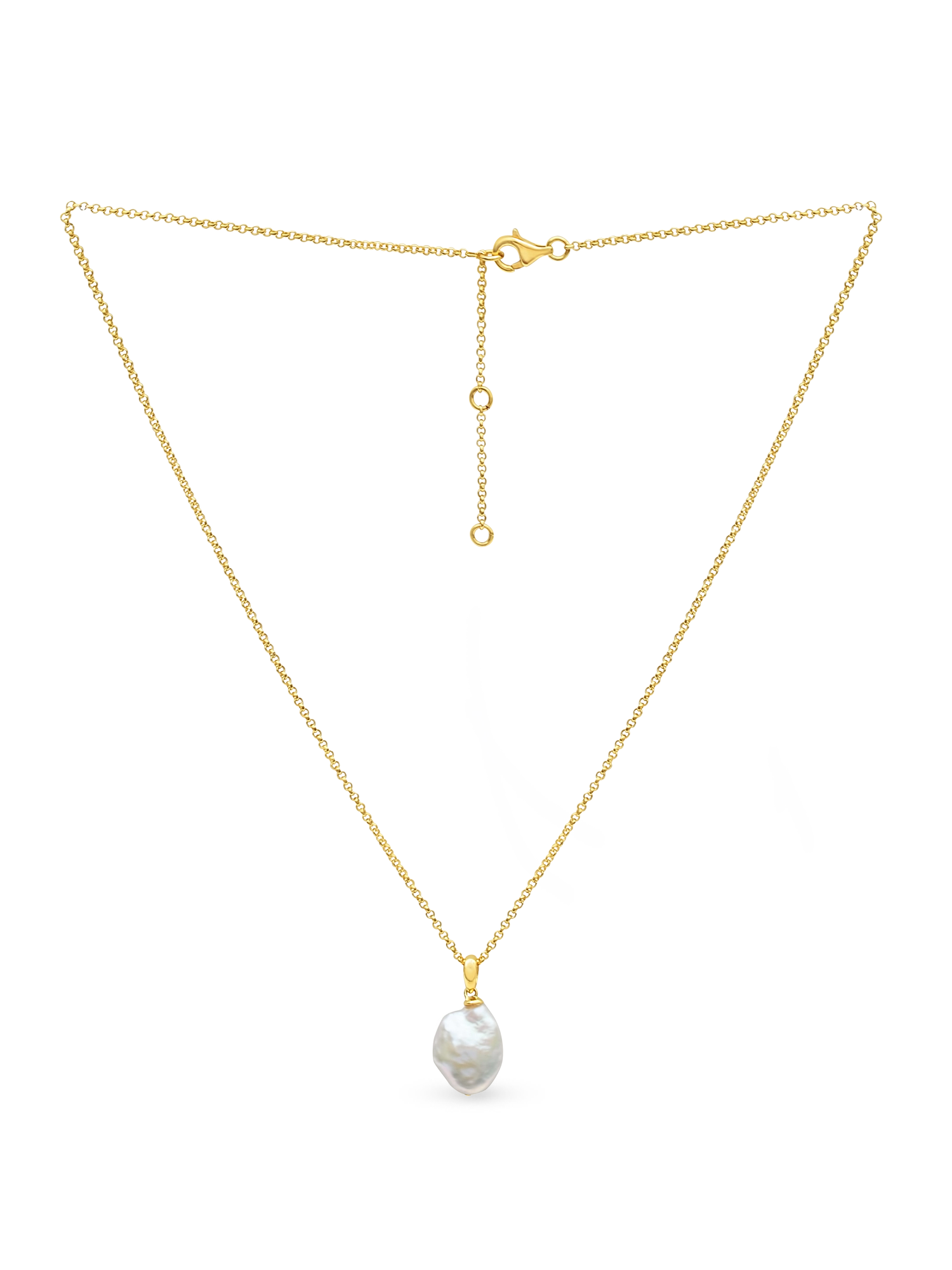 Inspired by the perfectly imperfect essence of real beauty. A baroque freshwater cultured pearl in a stunning, unique shape hangs from chain for an effortless yet elevated everyday look.