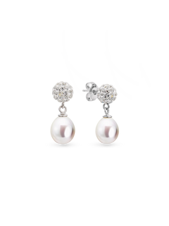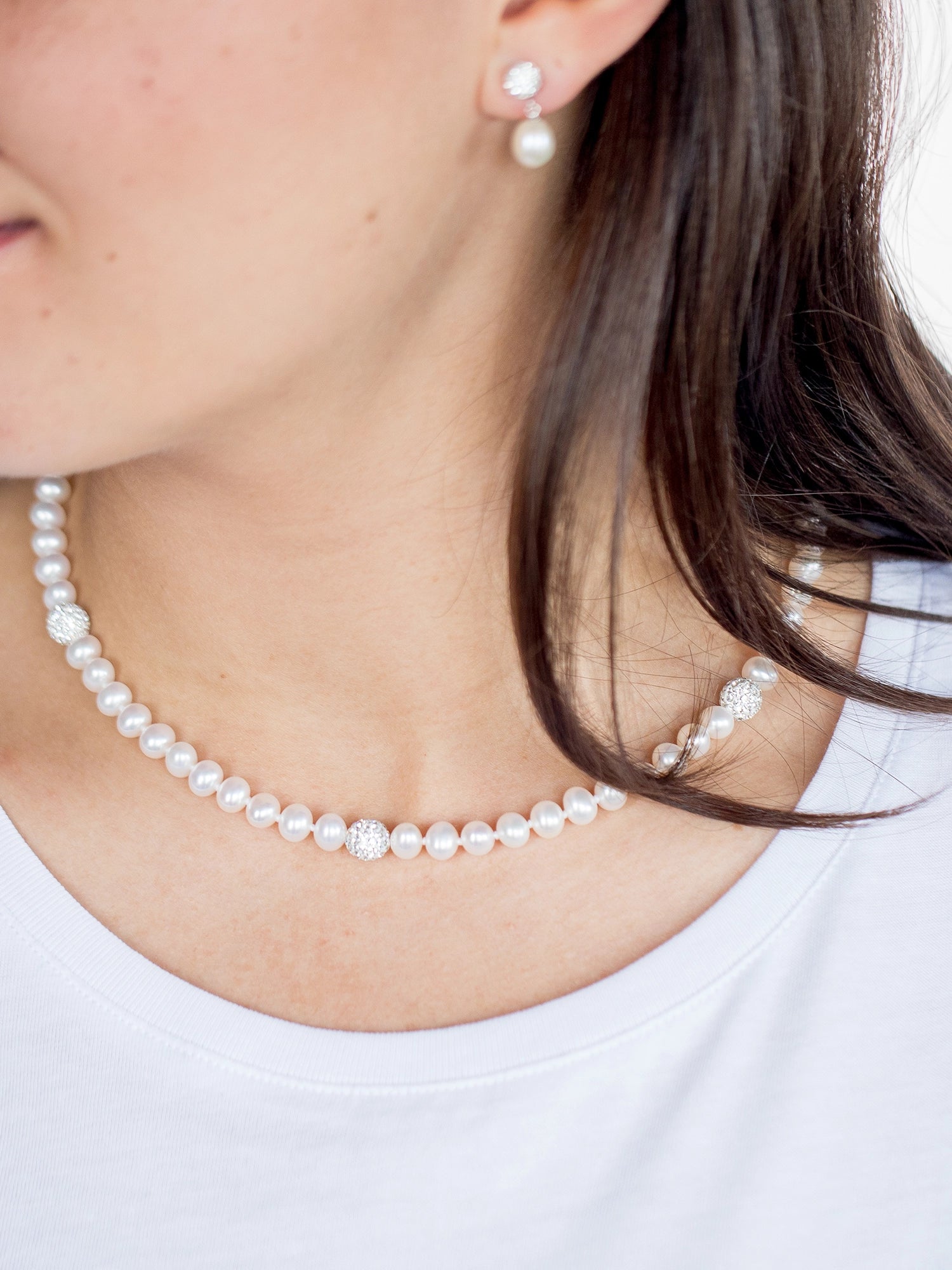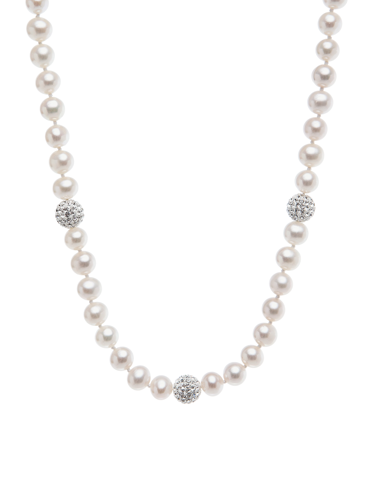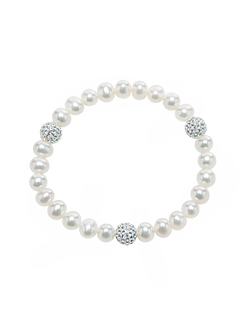 Complementing the luster of luminous freshwater pearls, a crystal bead adds a playful touch of luminosity in this elegant design.