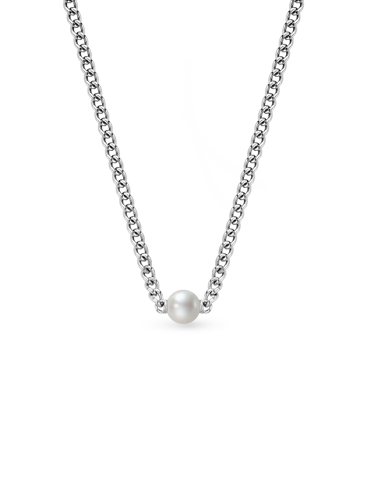 An interlocked sterling silver chain meets the soft touch of a genuine freshwater pearl for the perfect radiant edge.