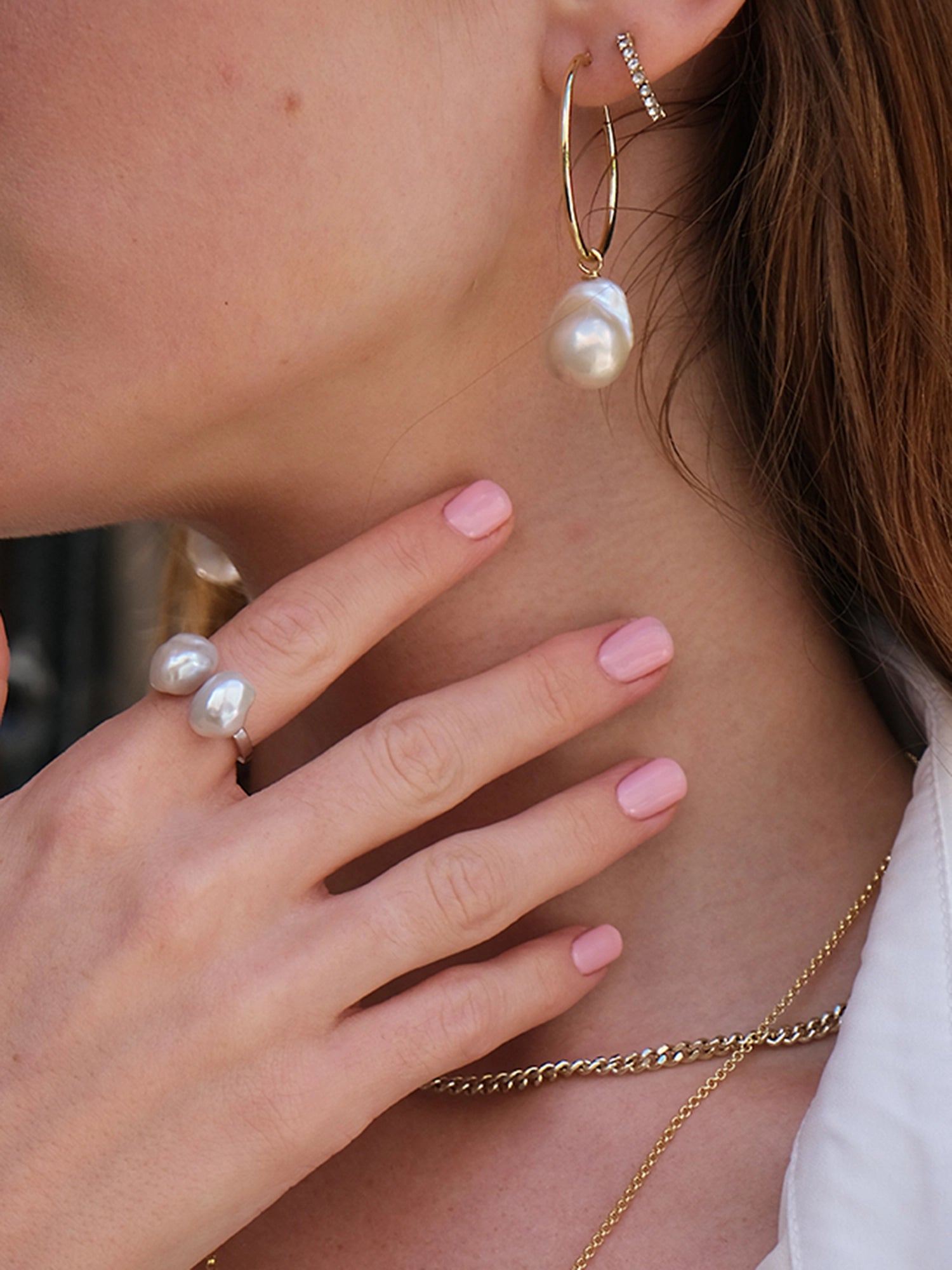 Inspired by the perfectly imperfect essence of real beauty. One-of-a-kind shaped baroque pearls can be removed, letting you wear the Holly as a simple hoop. They're that versatile.