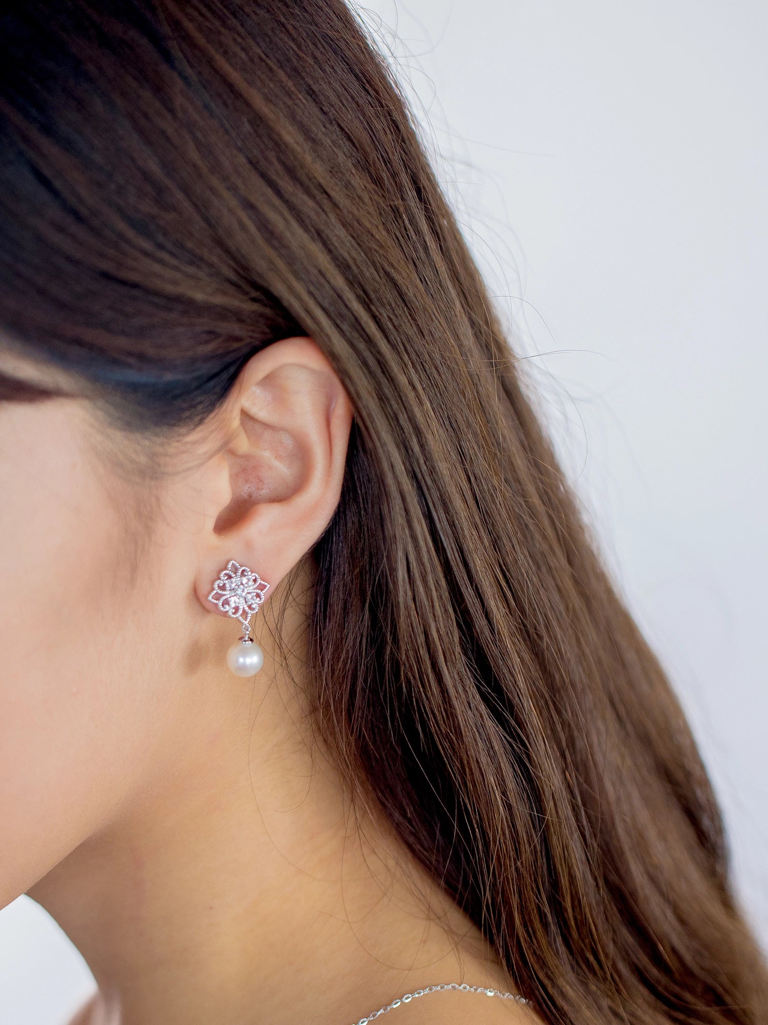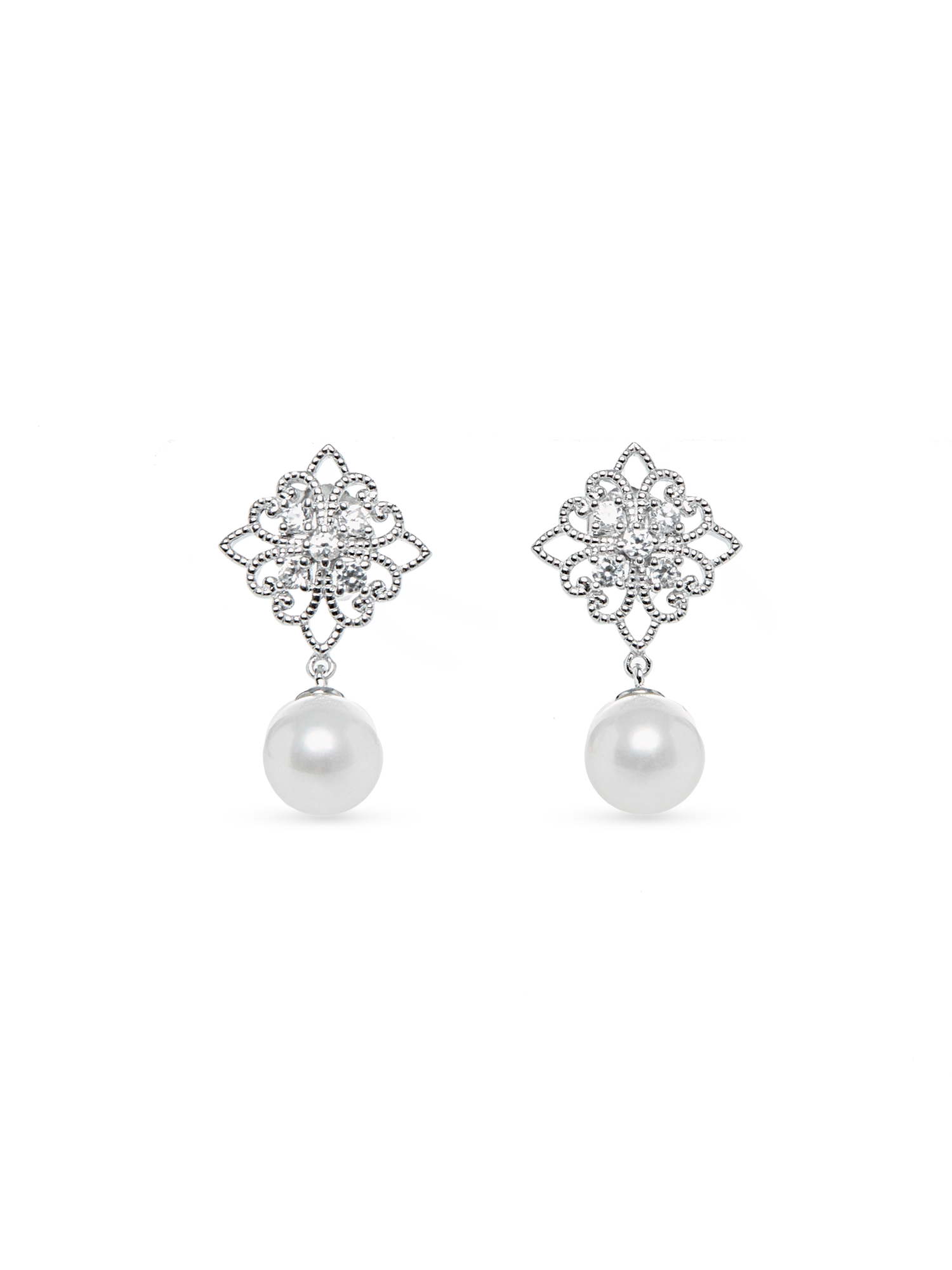 Vintage vibes meet modern glam. These earrings pair old-world charm with a sleek pearl finish. Perfect for those who adore a timeless statement piece!