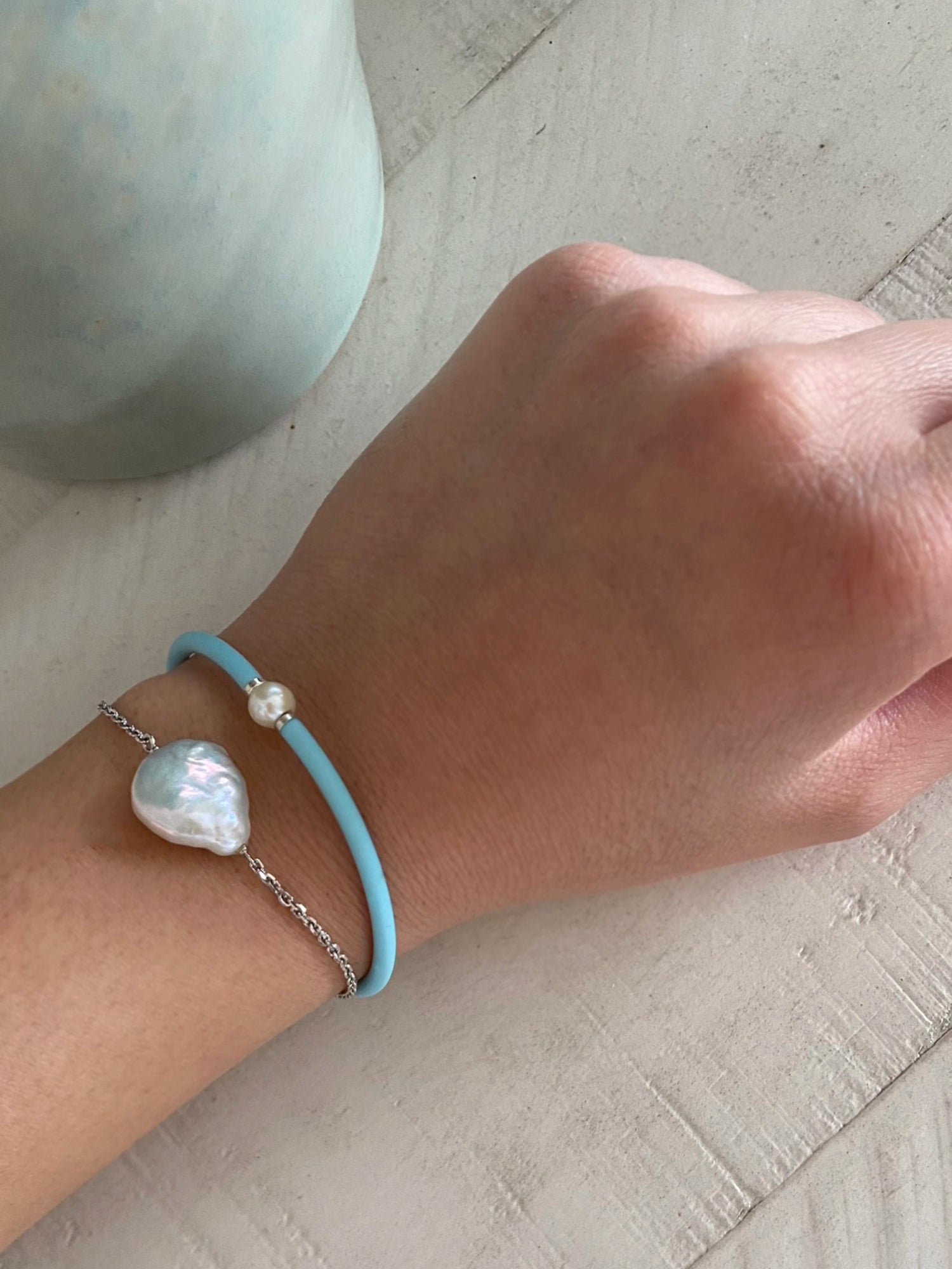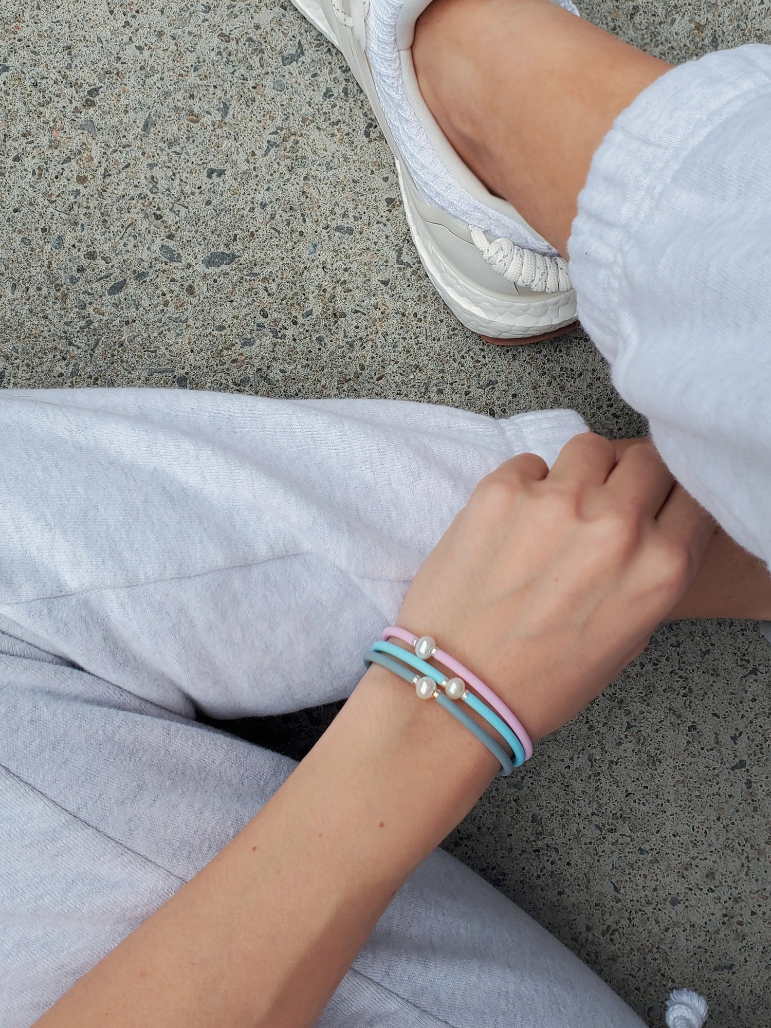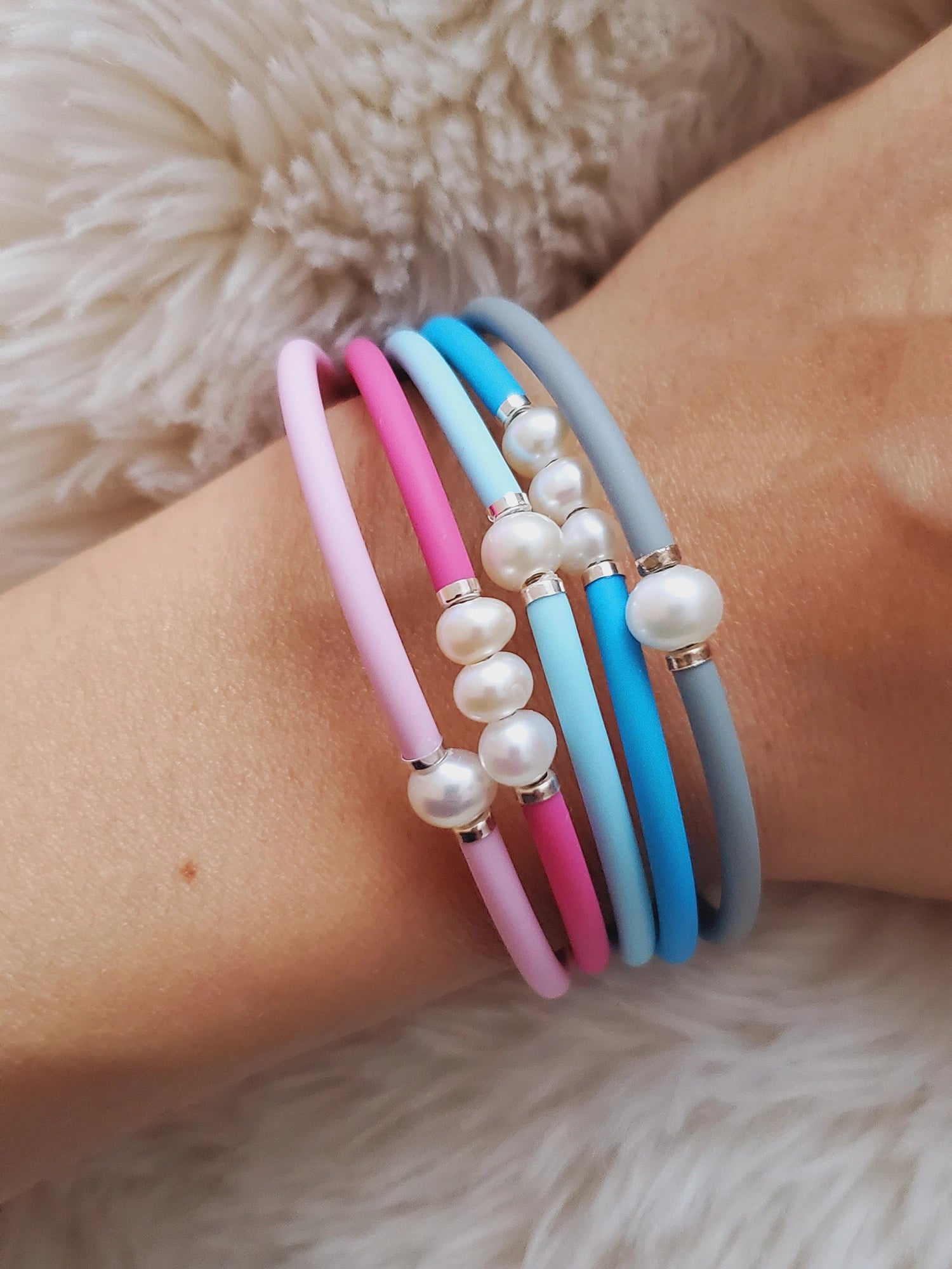 Mix and match different colors of our Lumi or simply add it to your bracelet stack for a subtle pearl accent and a pop of color. Made from premium quality rubber, sterling silver, and stainless steel spring for a perfect fit.