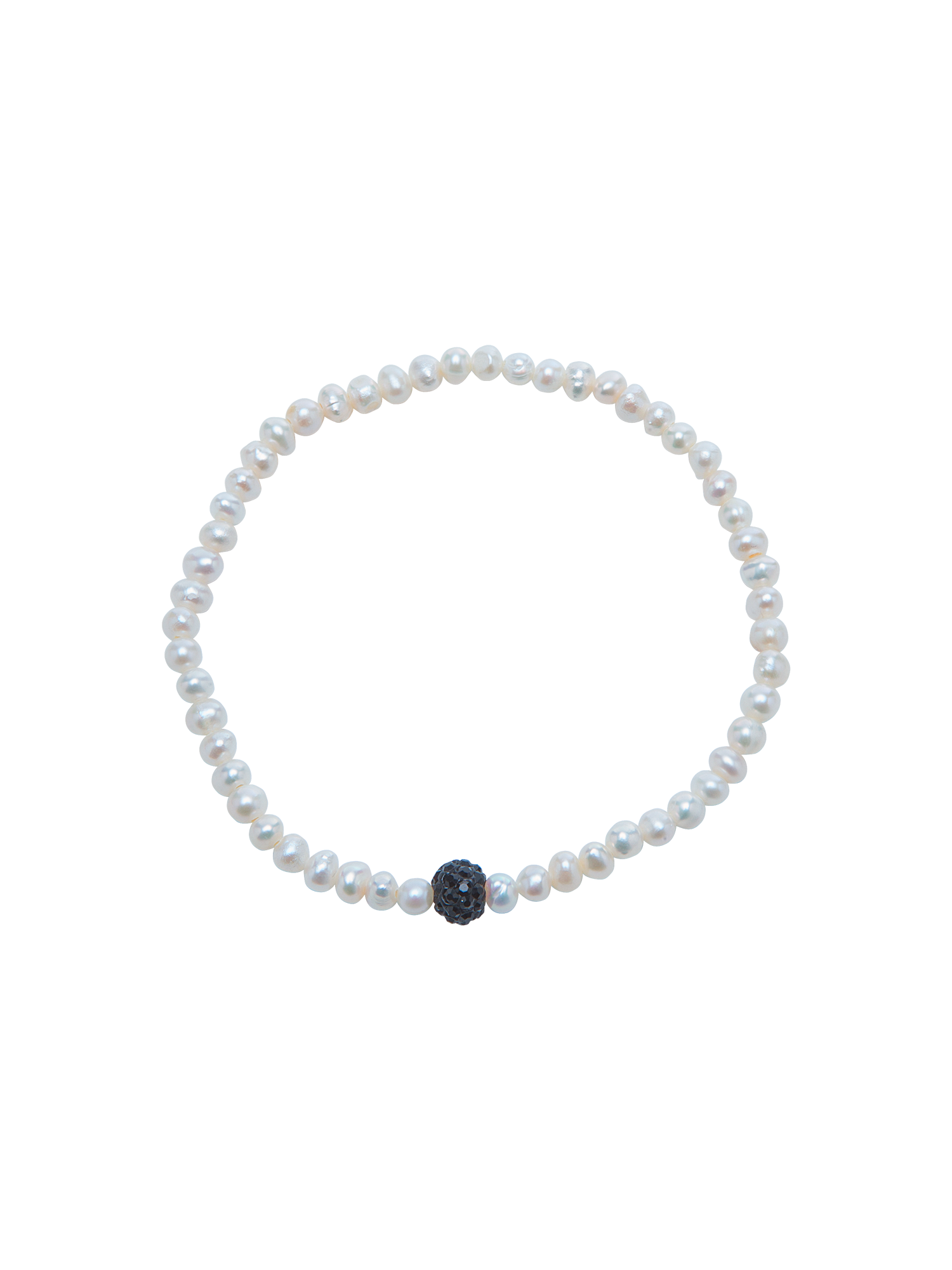 Shining bright alongside lustrous freshwater pearls, a crystal bead adds a playful dose of sparkle. Strung on a flexible elastic thread, our Crystal Bead Bracelet is all about easy, fun versatility.