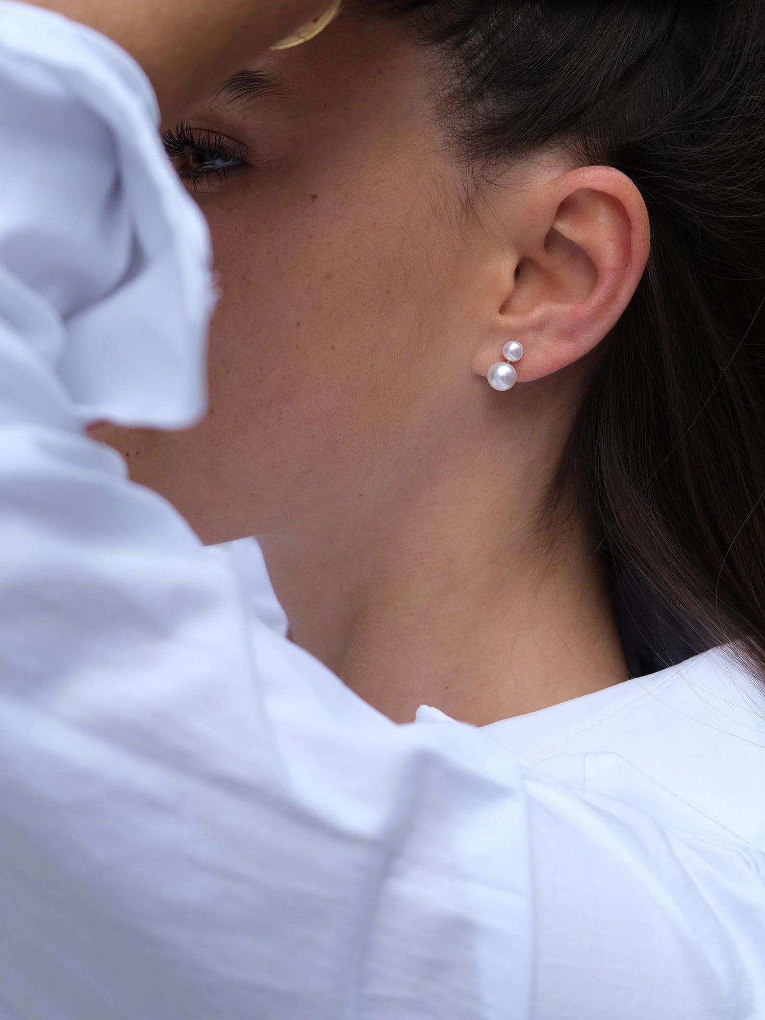 Double the pearls, double the charm. A fresh twist on the classic stud, this design plays with proportion for a look that’s bold and balanced.