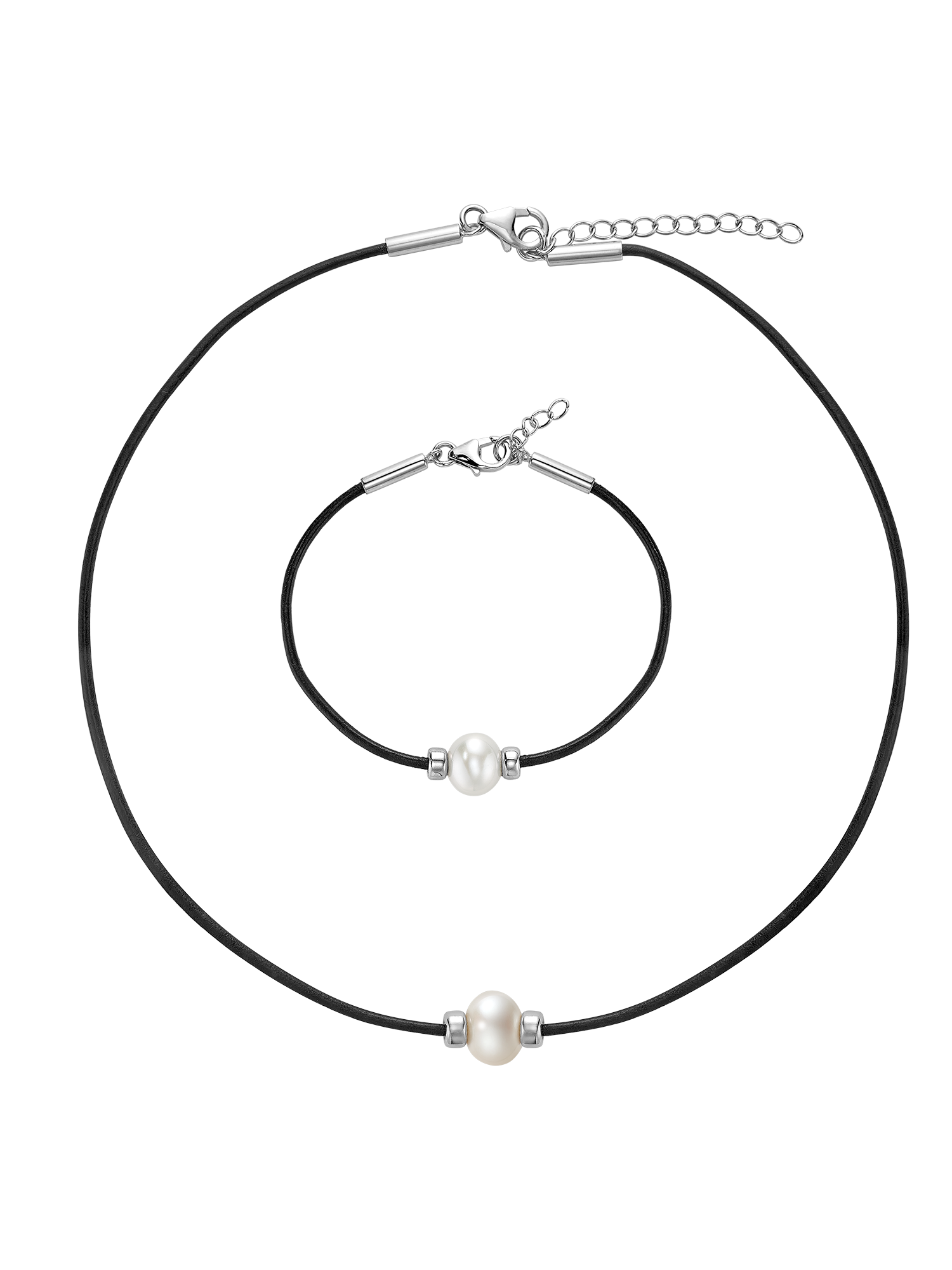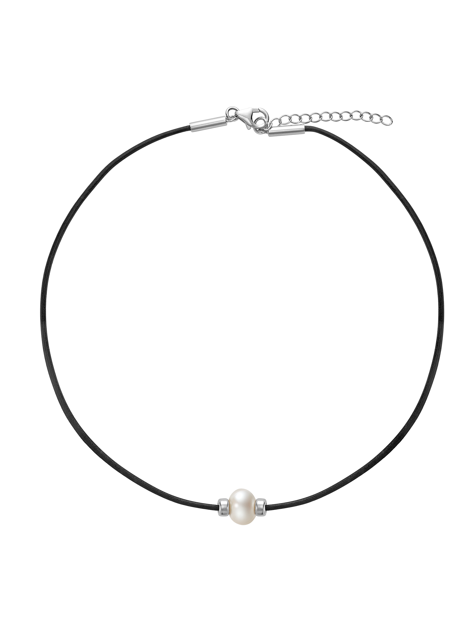 One pearl, endless edge. A sleek black cord and sterling silver details bring bold contrast to this everyday essential.