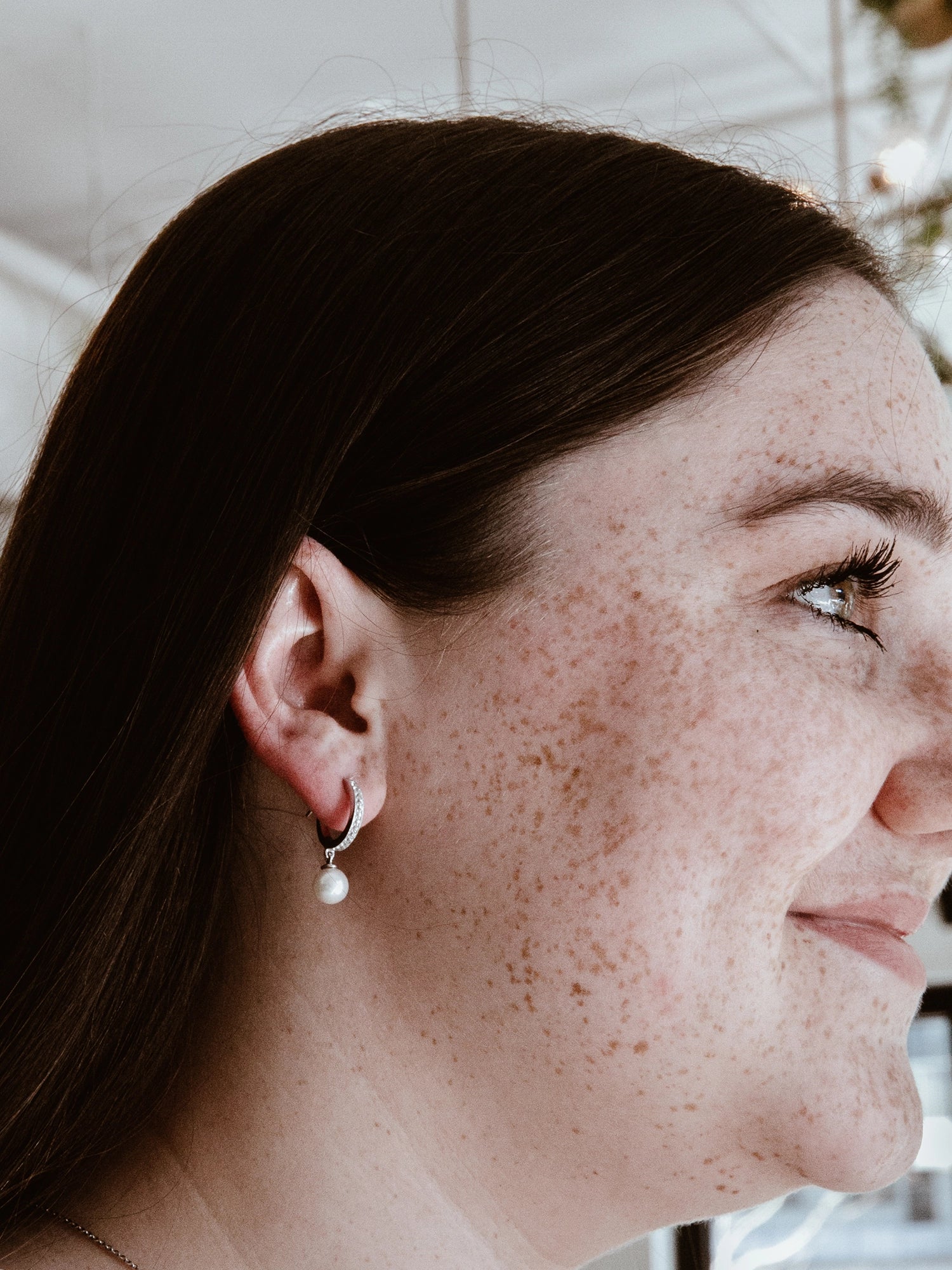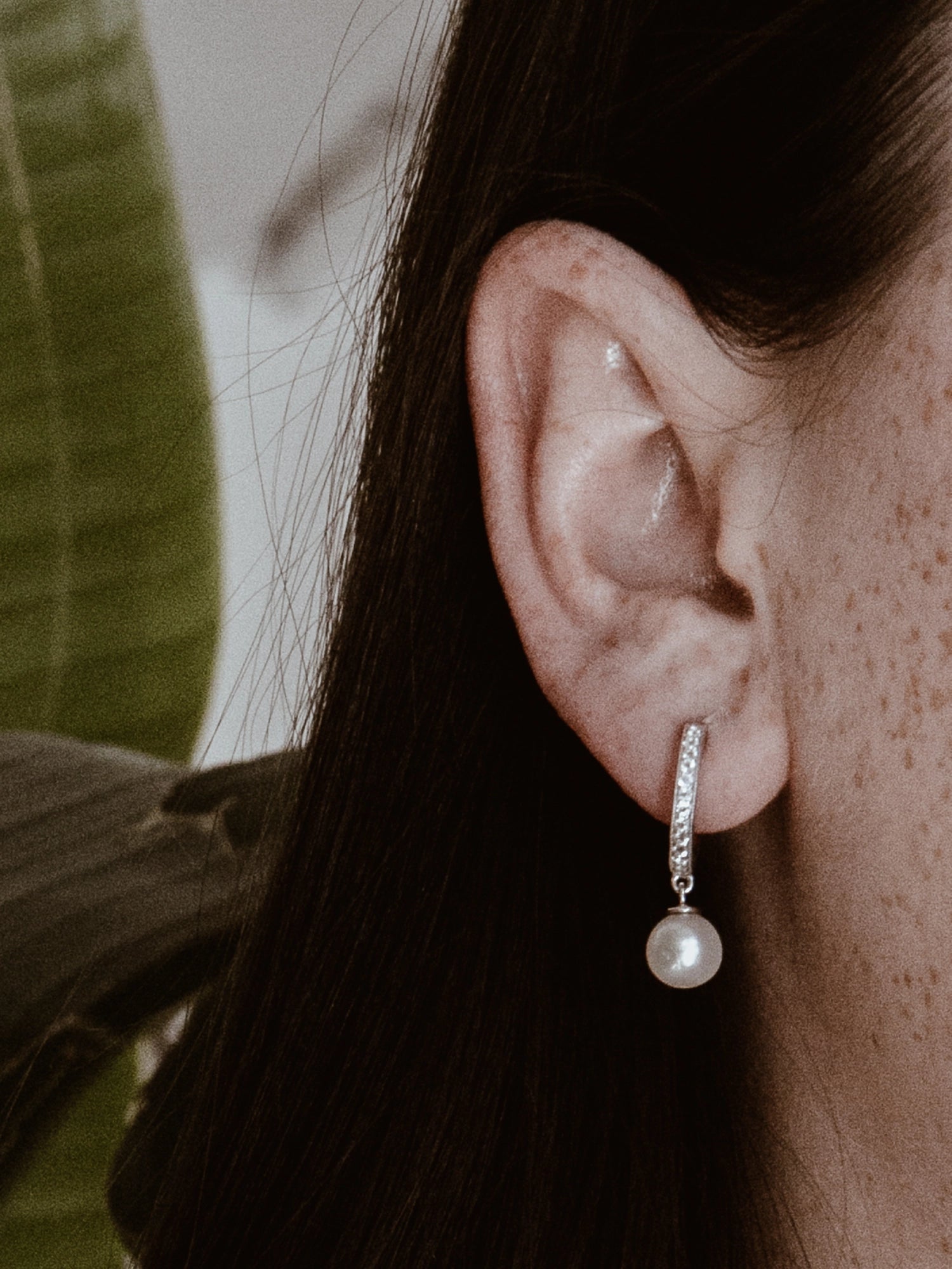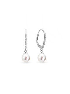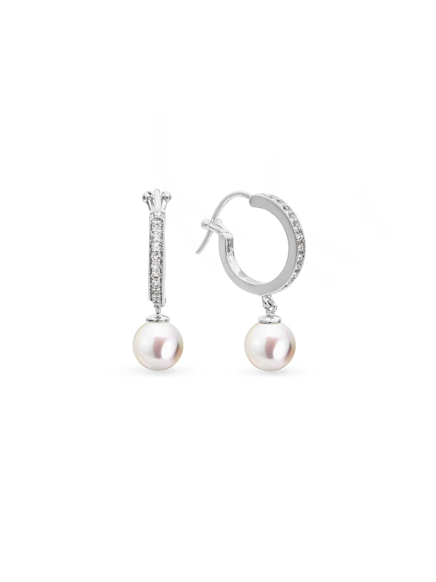 In a timeless design, round freshwater pearls dangle from a hoop encrusted with white topaz. Embrace the day-to-night elegance of our Pearl Topaz Hoops.