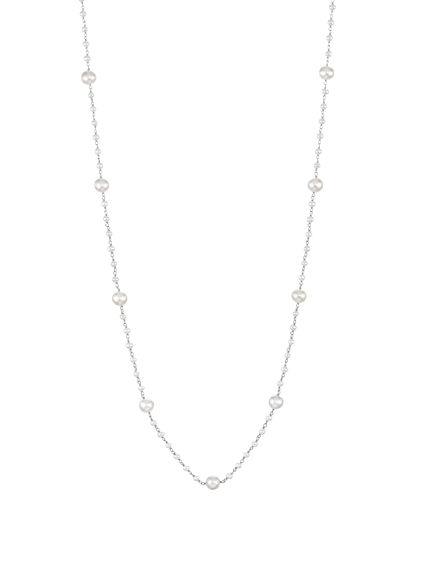 Smooth moves only. Pearls in mixed sizes scattered along a delicate chain for an easy, everyday kind of shine. Wear it solo or layer it.