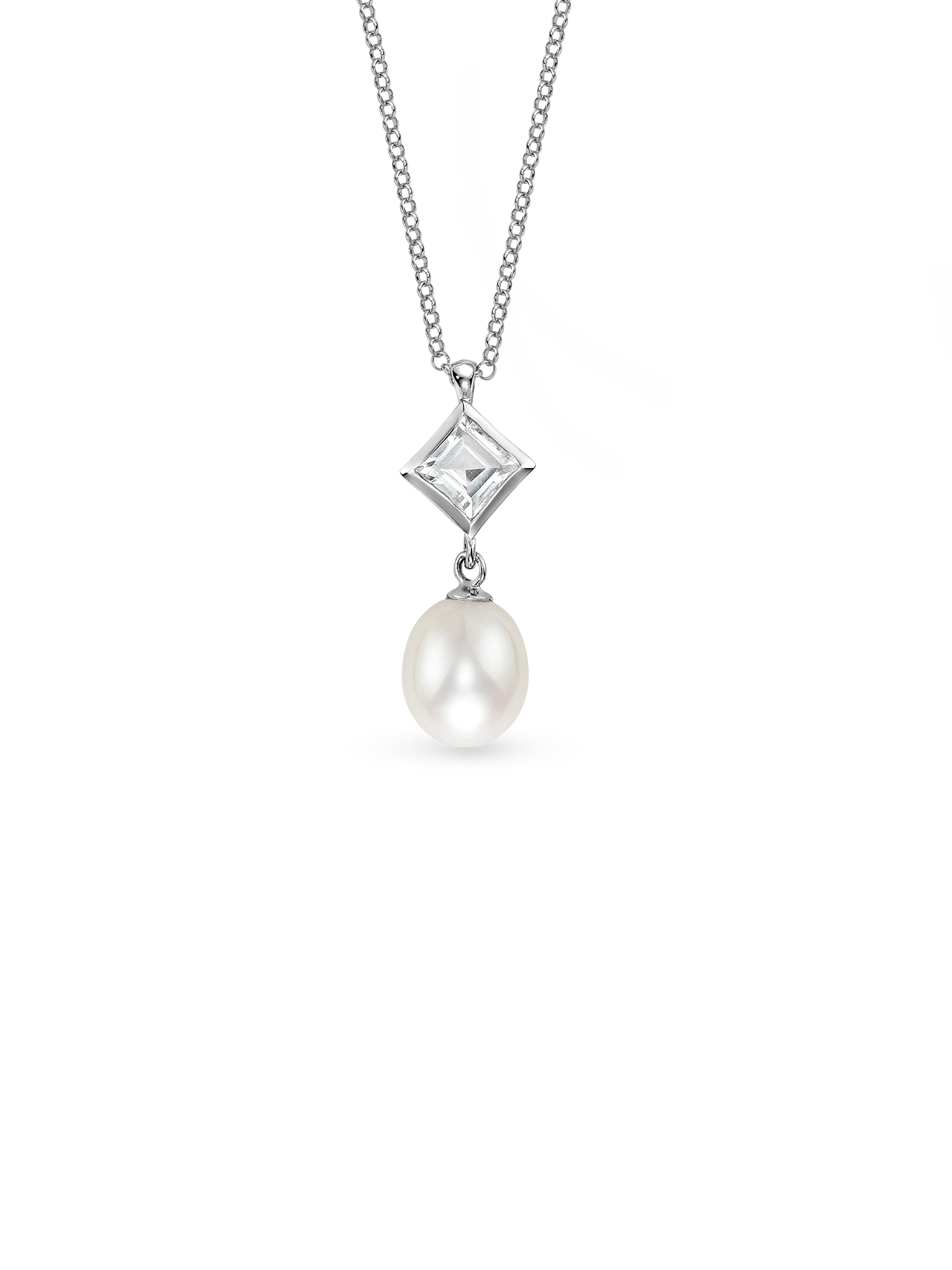 With geometric topaz and a dangling pearl, this necklace brings just the right mix of structure and shimmer.