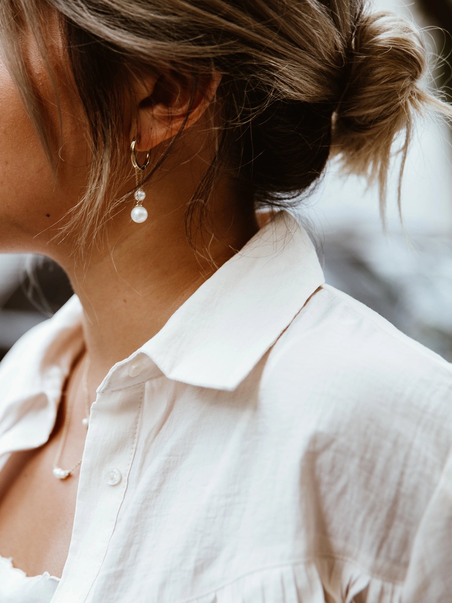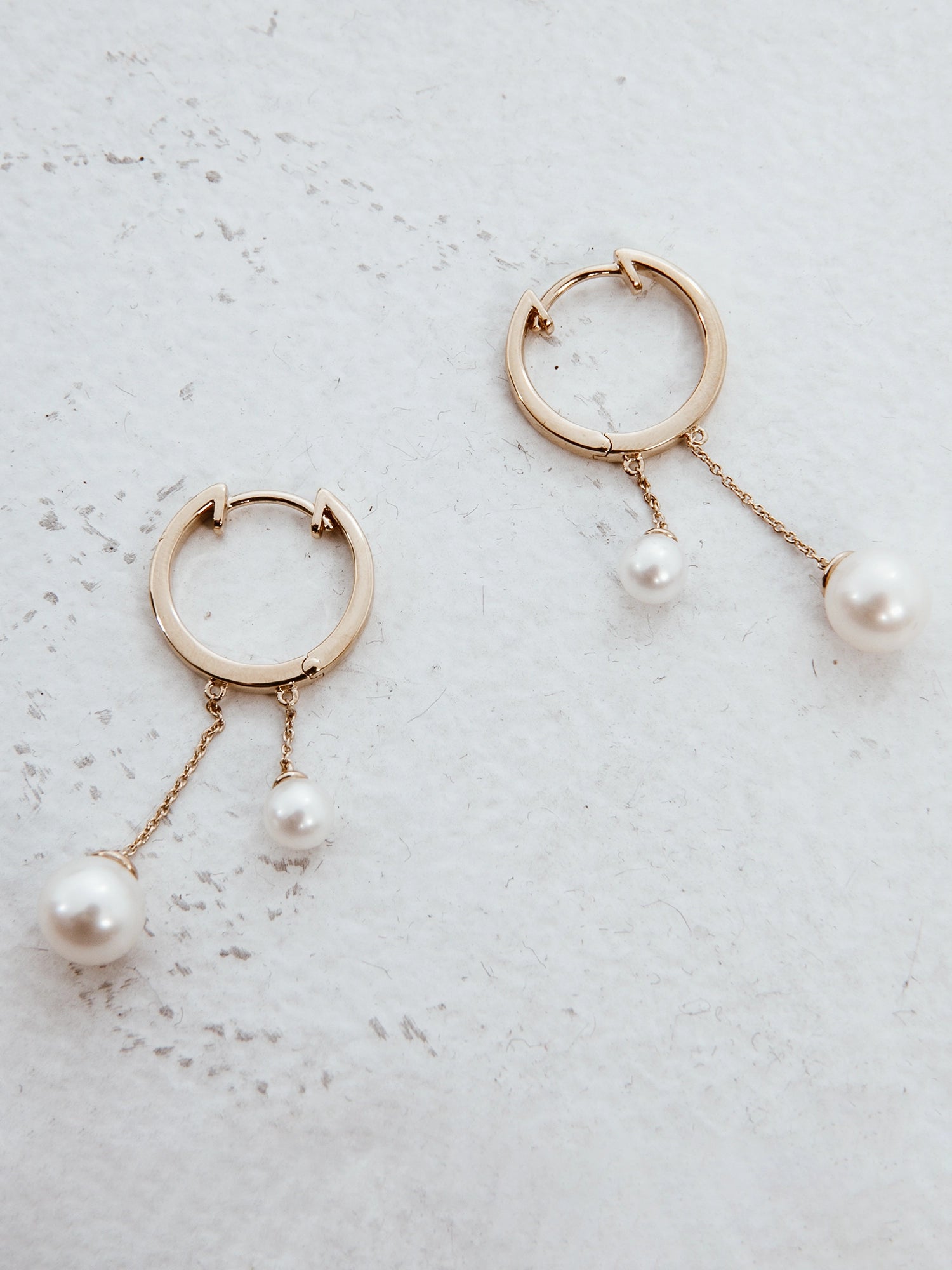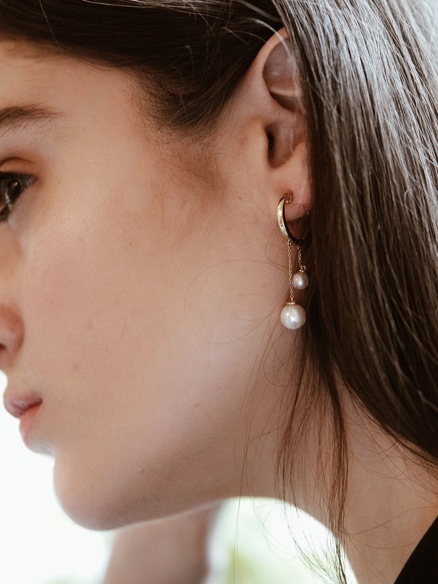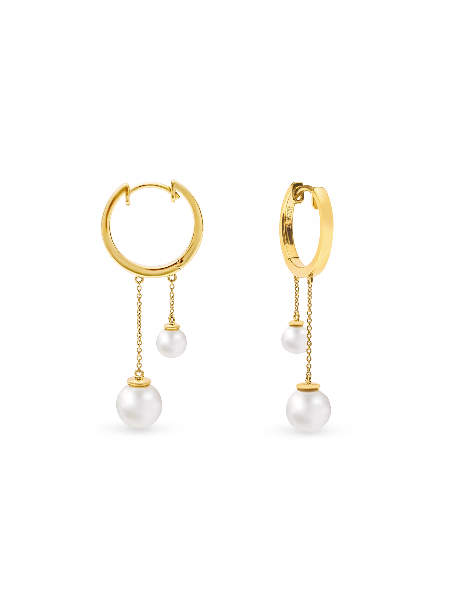 Two beautiful cultured freshwater white pearls suspended at different lengths, giving an accent to your everyday natural look.