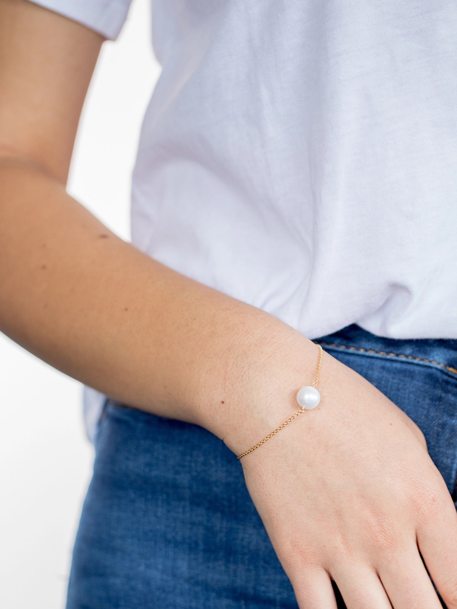 A delicate chain gracefully frames a single freshwater pearl. Worn alone or layered, our Simple Pearl Bracelet is the perfect mix of simplicity and style.
