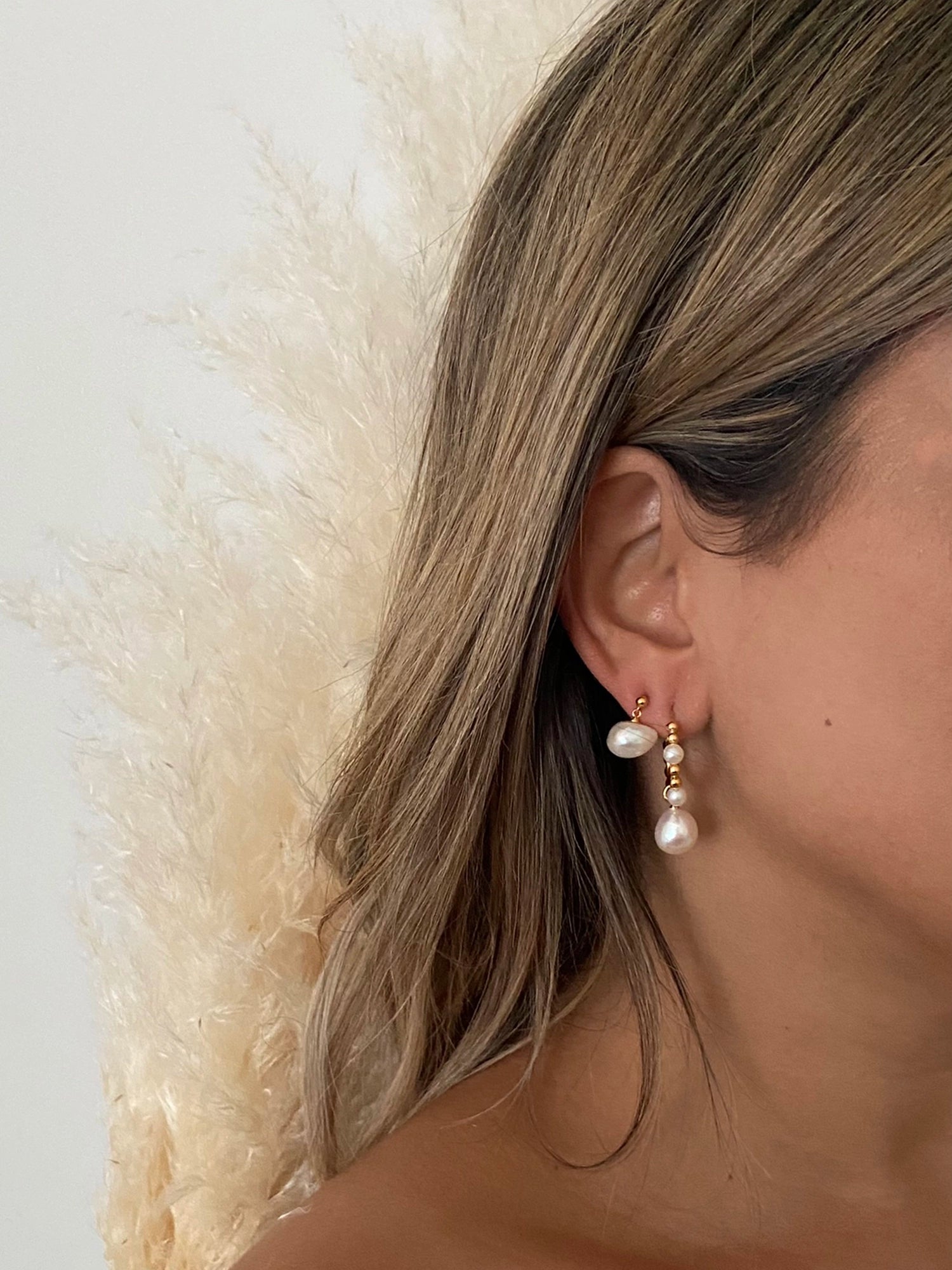 Our Sophia earrings are the perfect blend of classic and unique. Featuring a baroque pearl suspended from a classic vermeil bead stud, these earrings are your go-to choice for a one-of-a-kind statement.