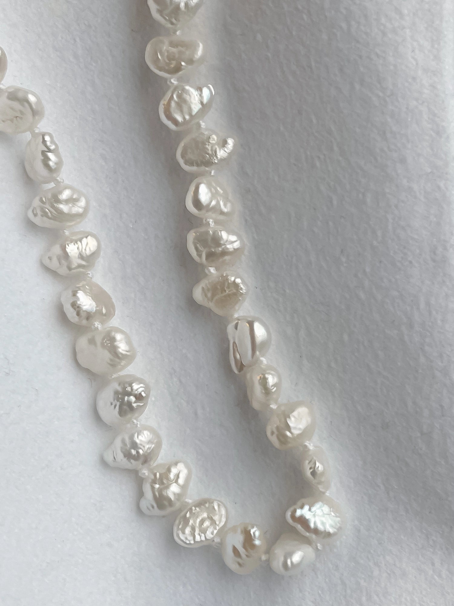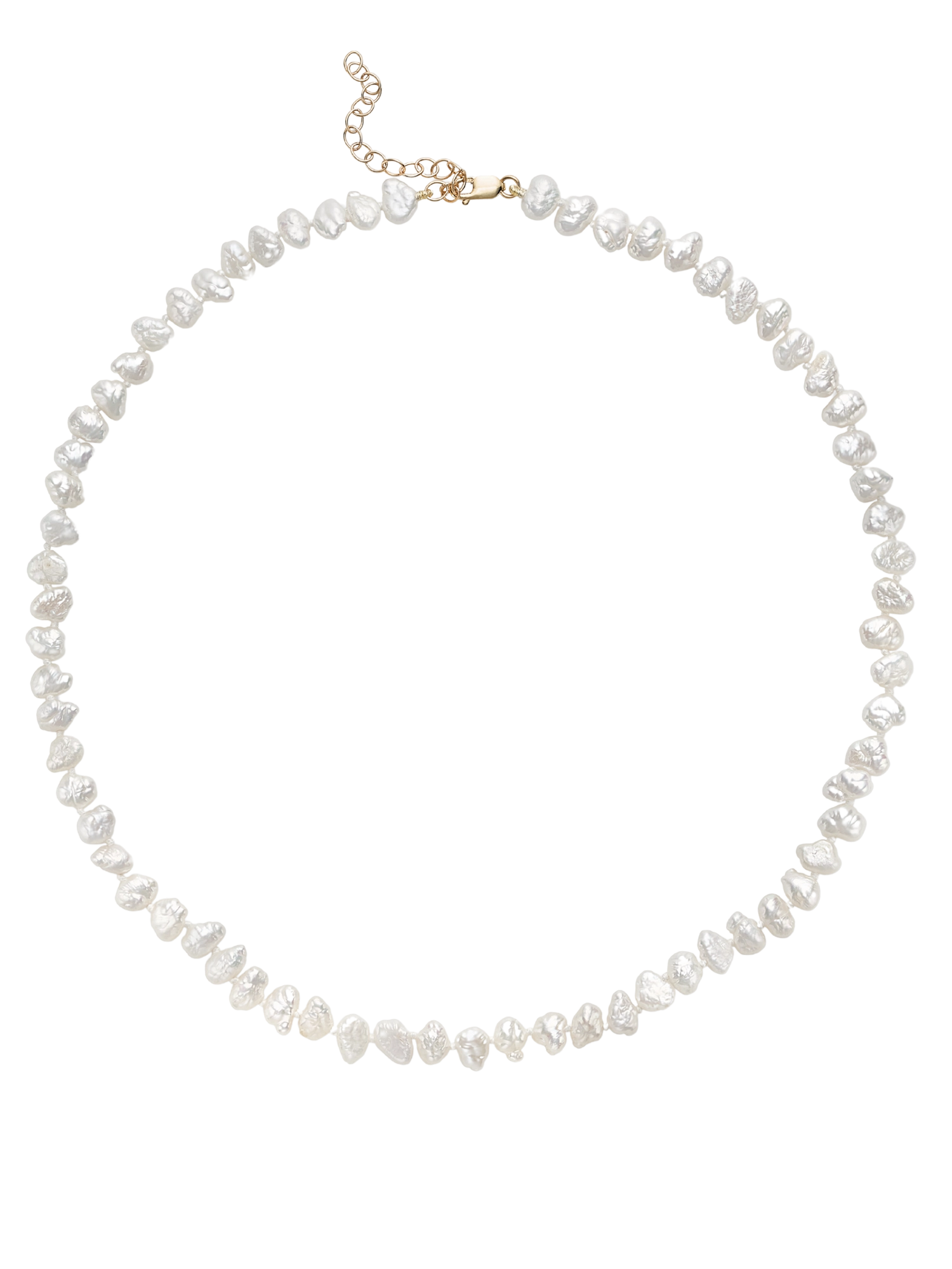 Not your average strand. Theo swaps the polished pearl look for something more playful—with organic keshi shapes and a hint of solid gold. Style it solo, layer it up, wear it your way.