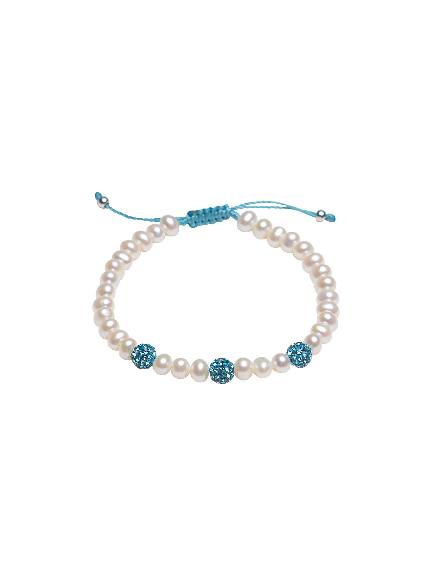Simply stackable. This playful cultured fresh water pearl bracelet features three crystal beads all secured on an adjustable thread.