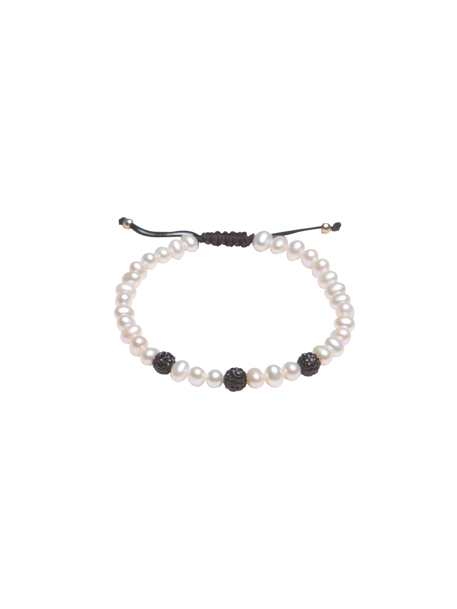 Simply stackable. This playful cultured fresh water pearl bracelet features three crystal beads all secured on an adjustable thread.