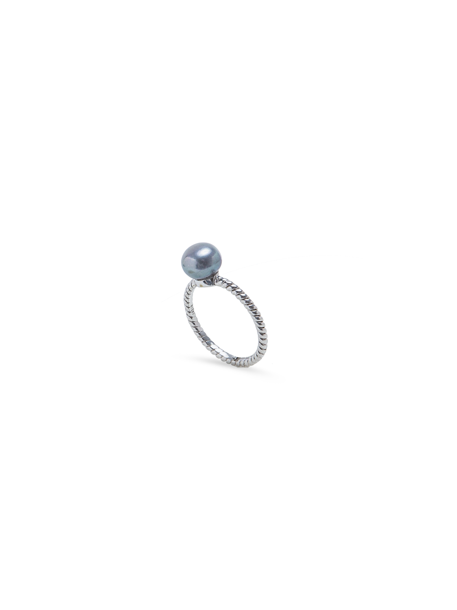 A unique twist on a timeless treasure. The intertwining silver band creates visual contrast, adding a touch of modernity to the classic pearl and making it ideal for stacking.
