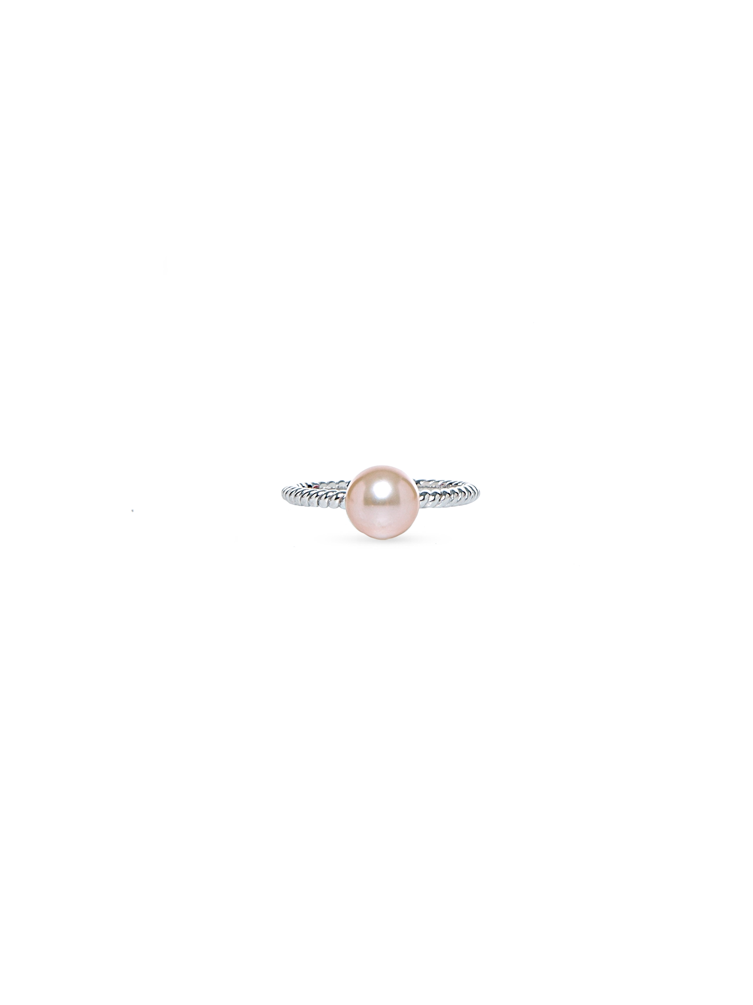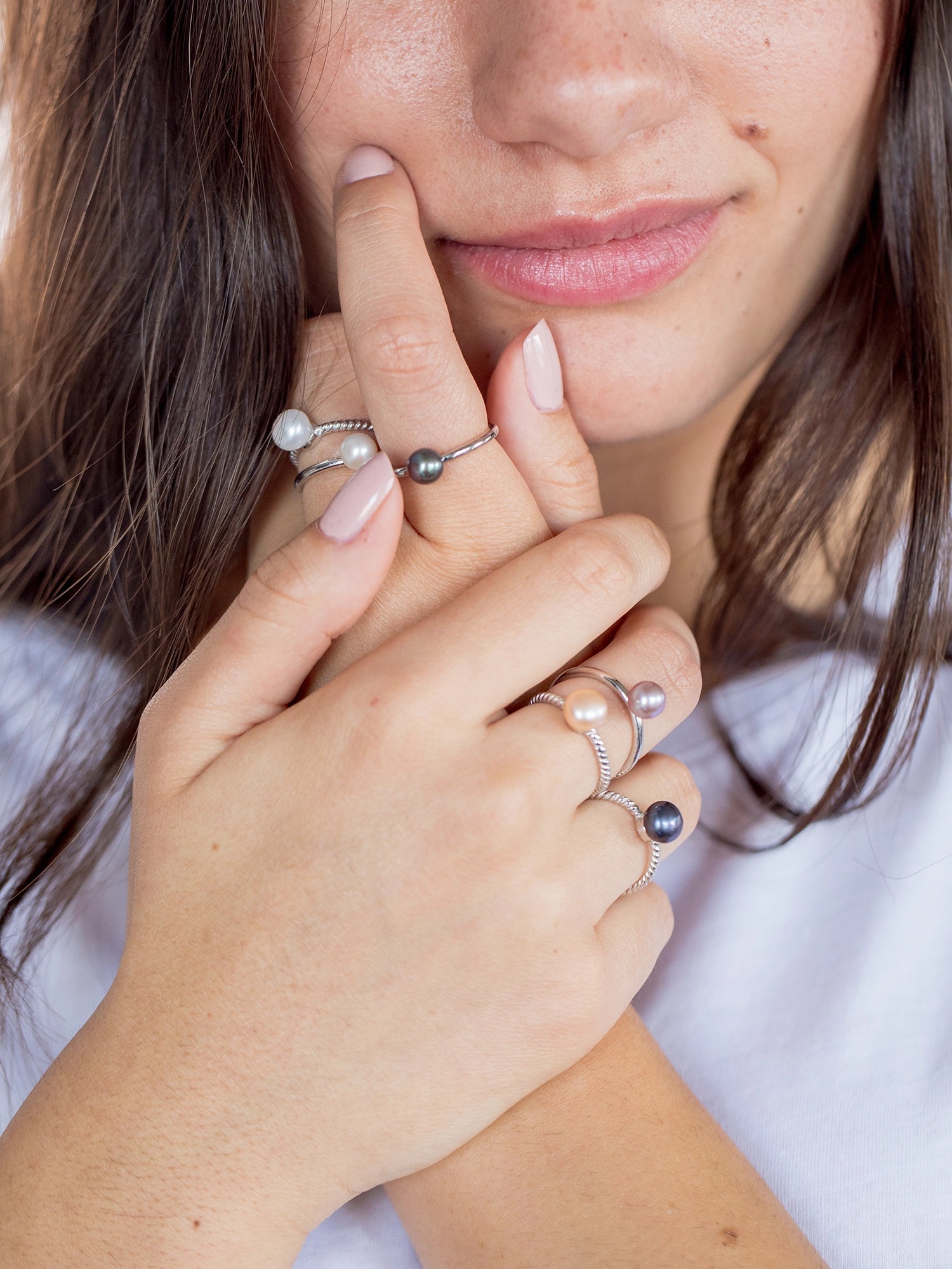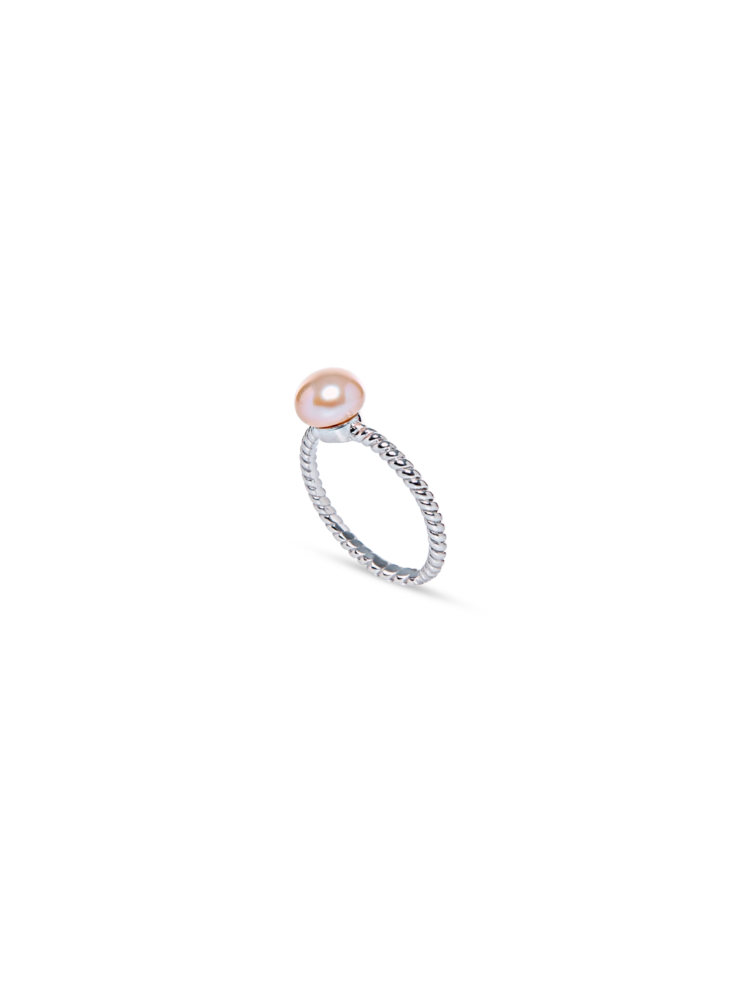 A unique twist on a timeless treasure. The intertwining silver band creates visual contrast, adding a touch of modernity to the classic pearl and making it ideal for stacking.